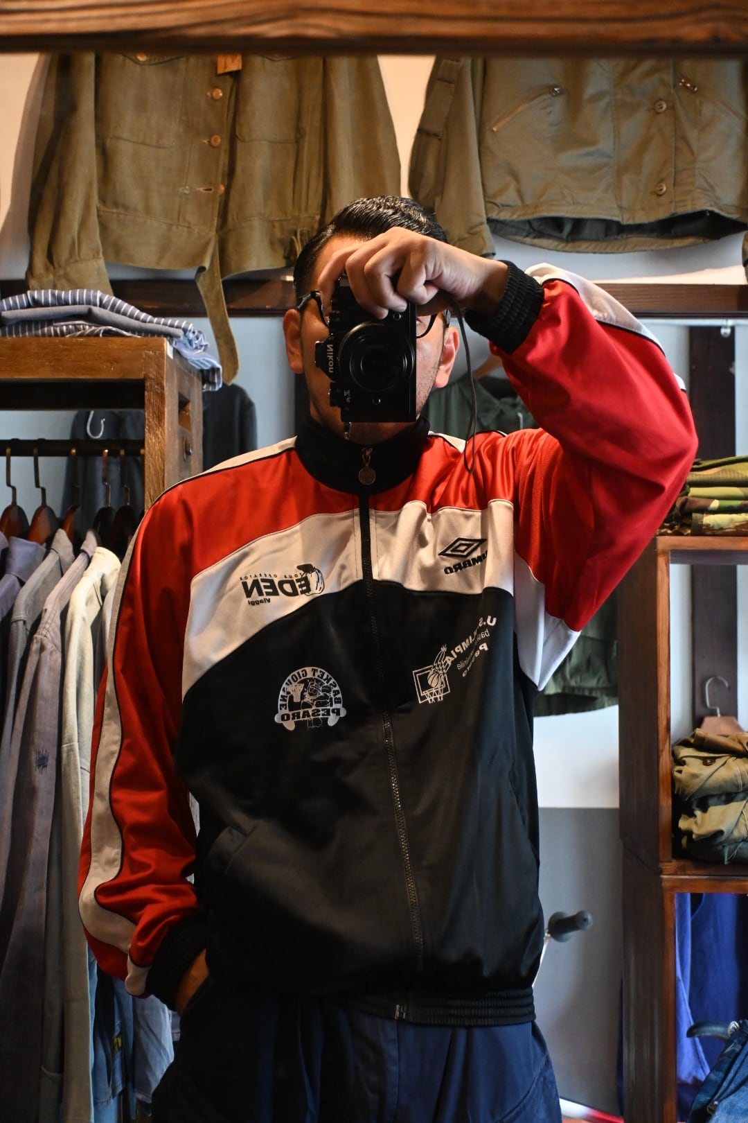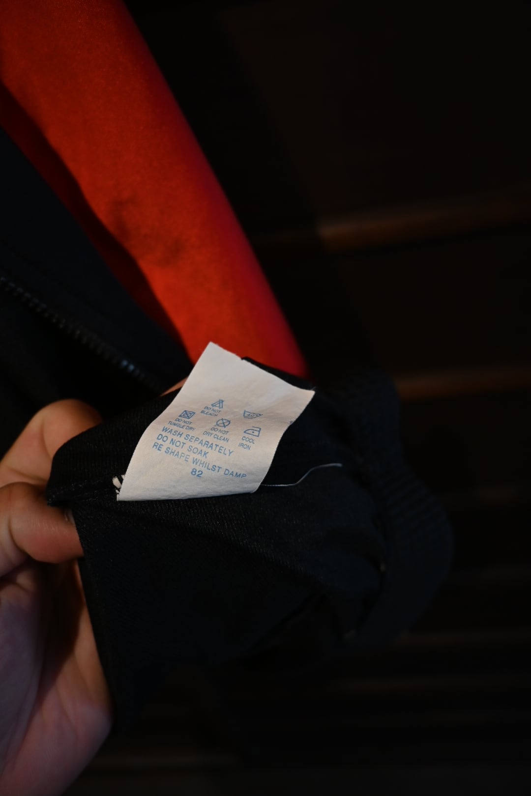 ブラック × レッド × ホワイトのトリコロール配色が映えるデザインで、90年代~2000年代初頭らしいシルエットと雰囲気を持つ一着。