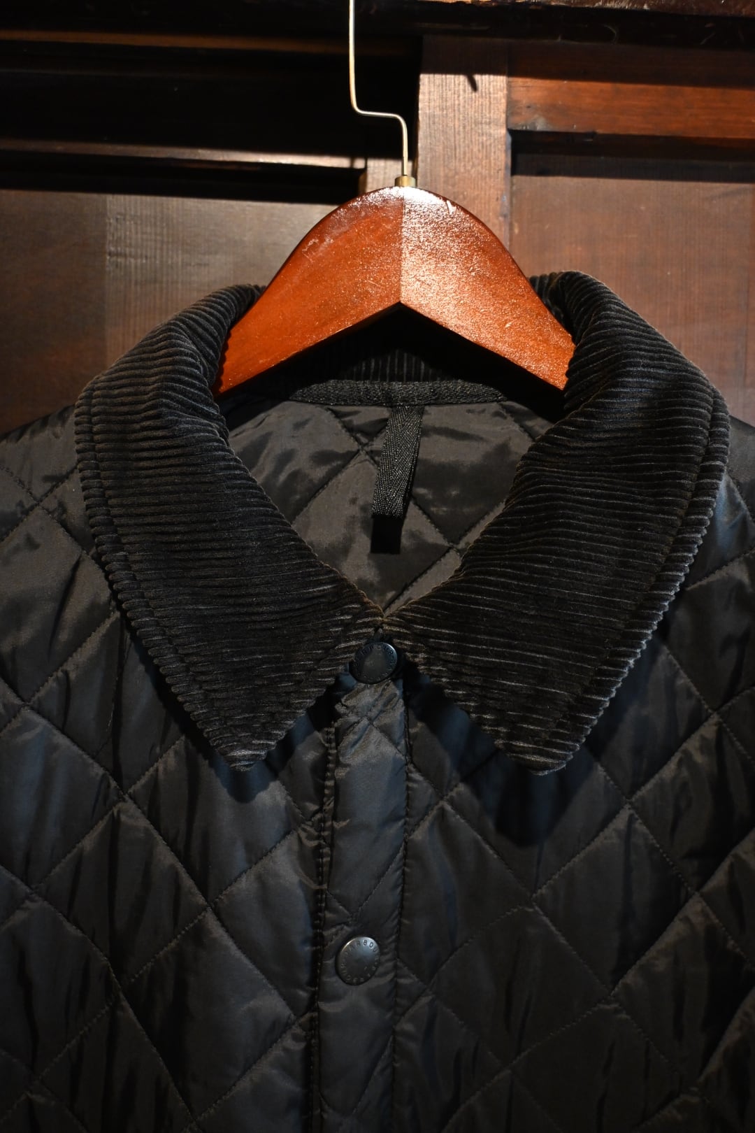 軽量で保温性のあるポリエステル中綿を使用し、ダイヤモンドキルティングのクラシックなデザインが特徴。襟には太畝のコーデュロイを配し、上品かつカジュアルに着こなせます。