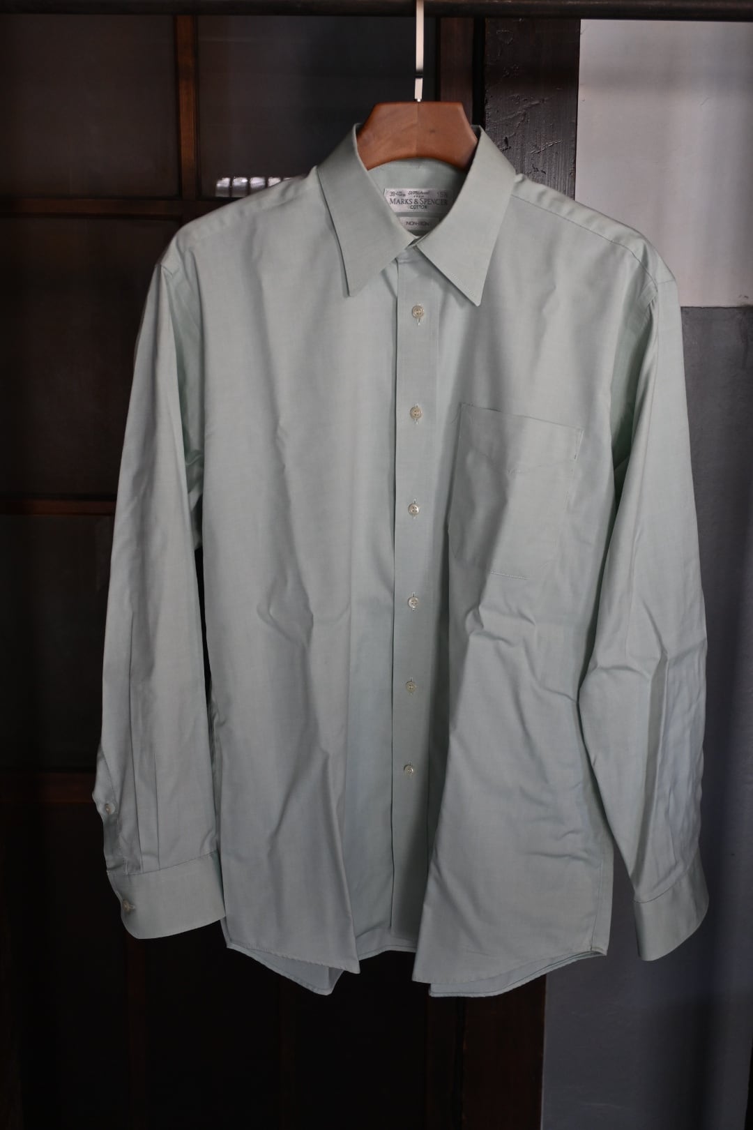 イギリス老舗百貨店のmarks&Spencerの自社ブランドst.michaelのコットンロングスリーブシャツです。  鮮やかなグリーンが魅力で、カジュアルなスタイルにもビジネスシーンにも大変合わせやすい一着です。