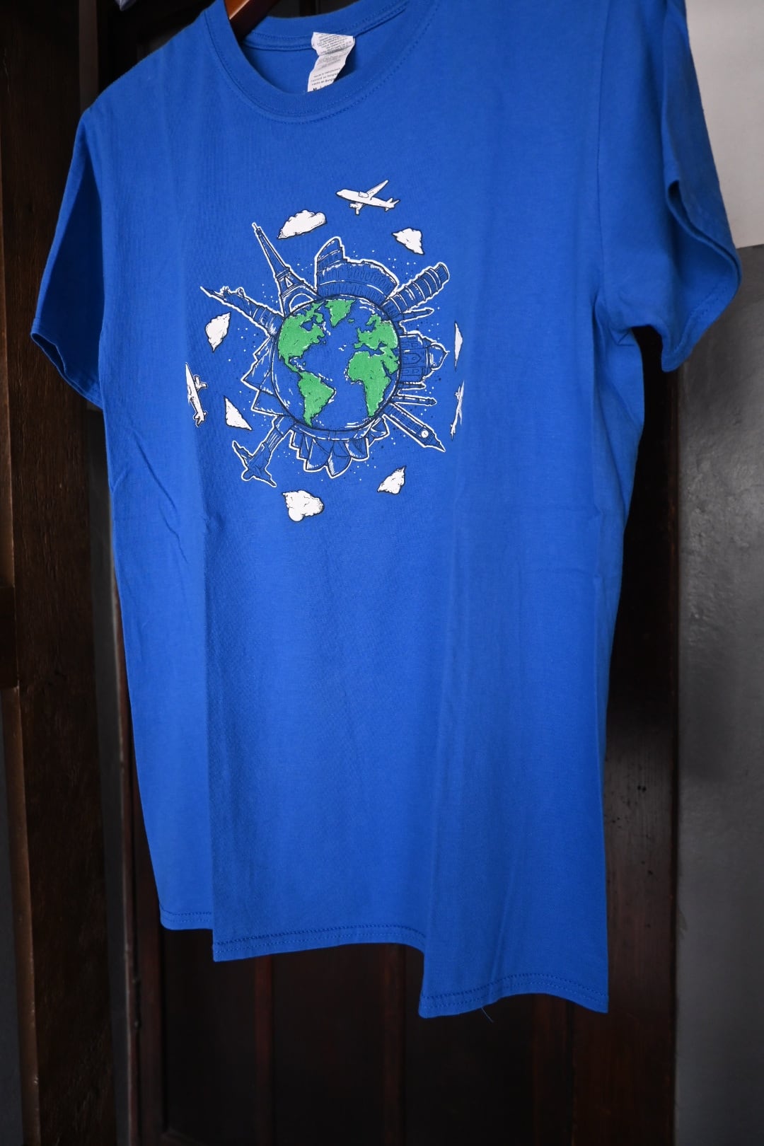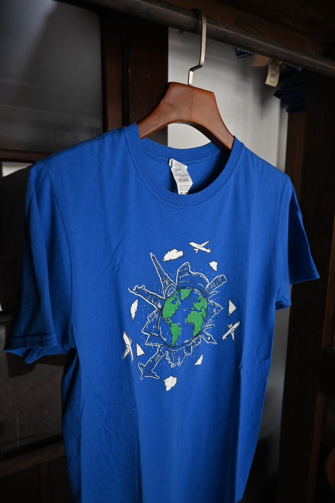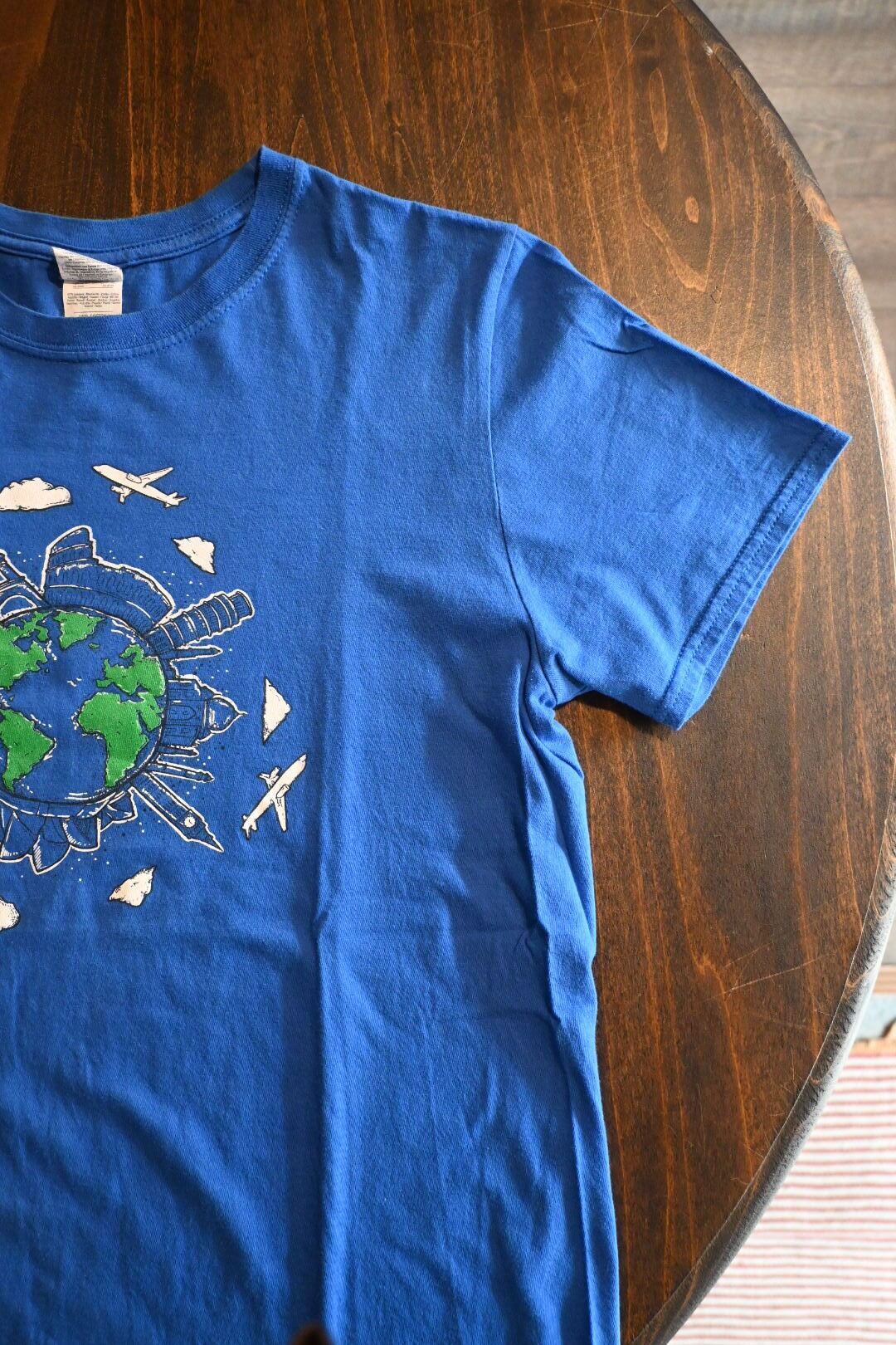 商品名: Travel the World Graphic T-Shirt – Blue Globe Design
