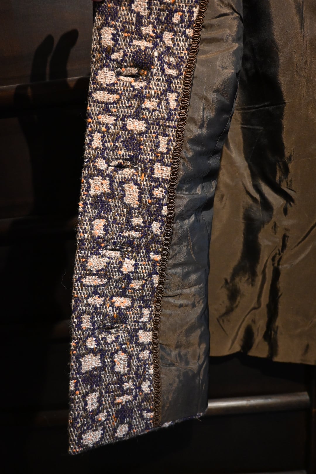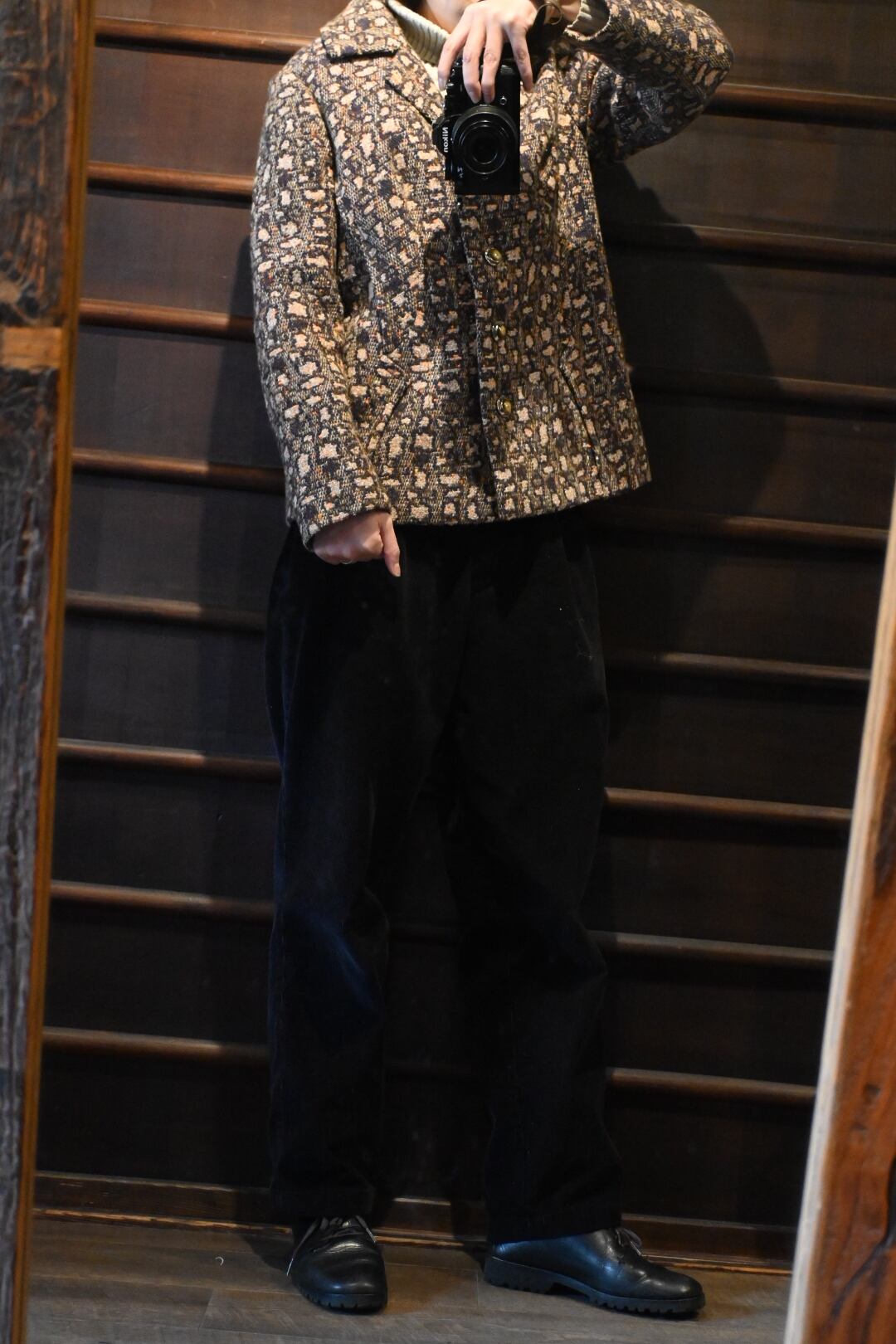 ツイード生地を使用。クラシックでありながら、イタリアらしい色気と華やかさを感じさせる一着です。