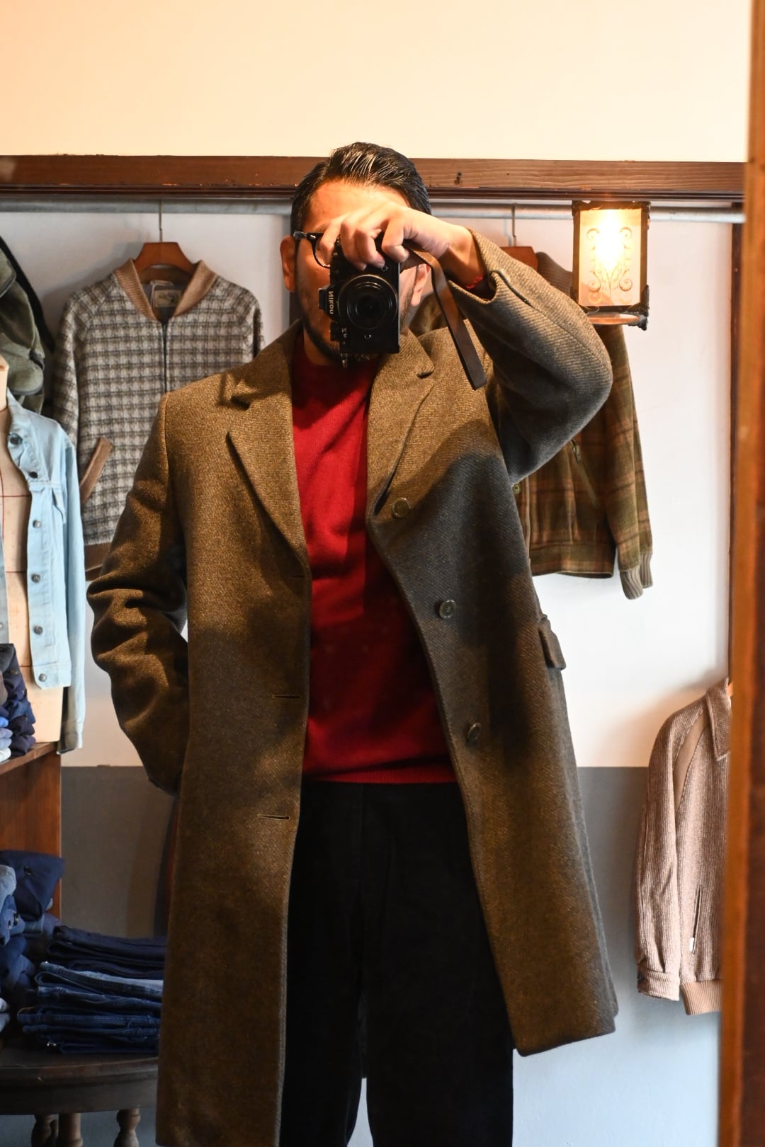 オーバーコートですが、着るとすっきりしていて持つとずっしりくる重さですが着るとしっかり馴染んで重たさを感じさせない着心地のいいコートです。