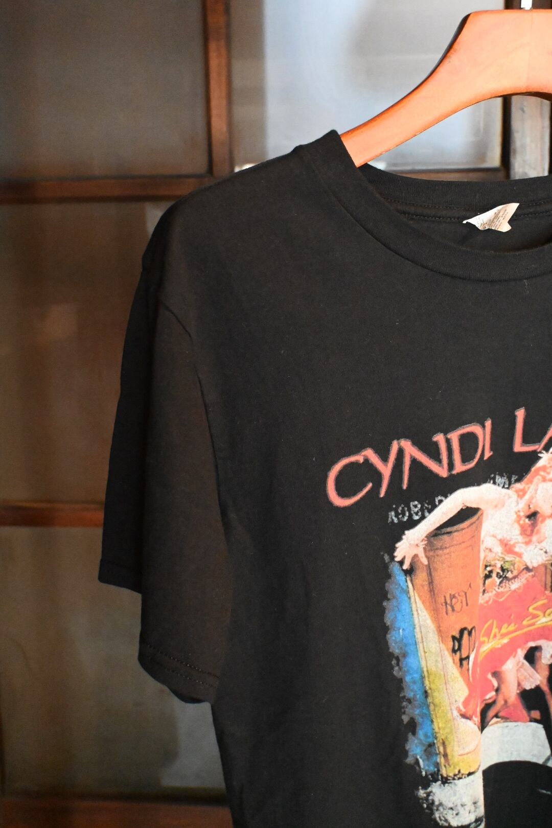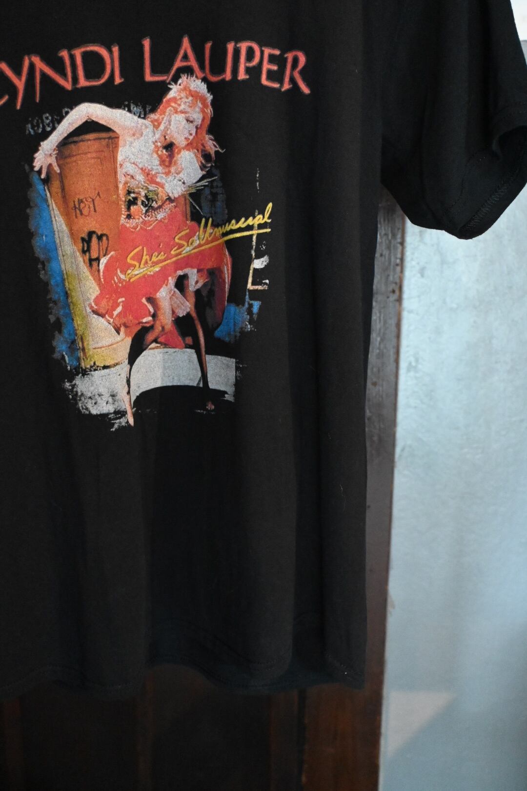 1983年リリースの伝説的アルバム『She’s So Unusual』のジャケットアートを大胆にプリントした、Cyndi LauperのTシャツ。