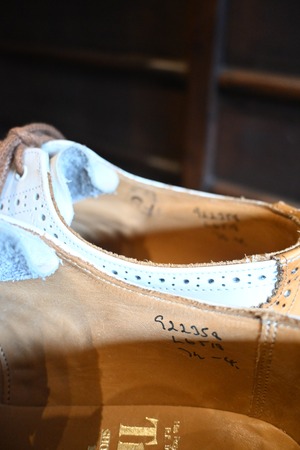 英国老舗靴ブランド Tricker’s のツートーン・フルブローグ・ダービーシューズ。