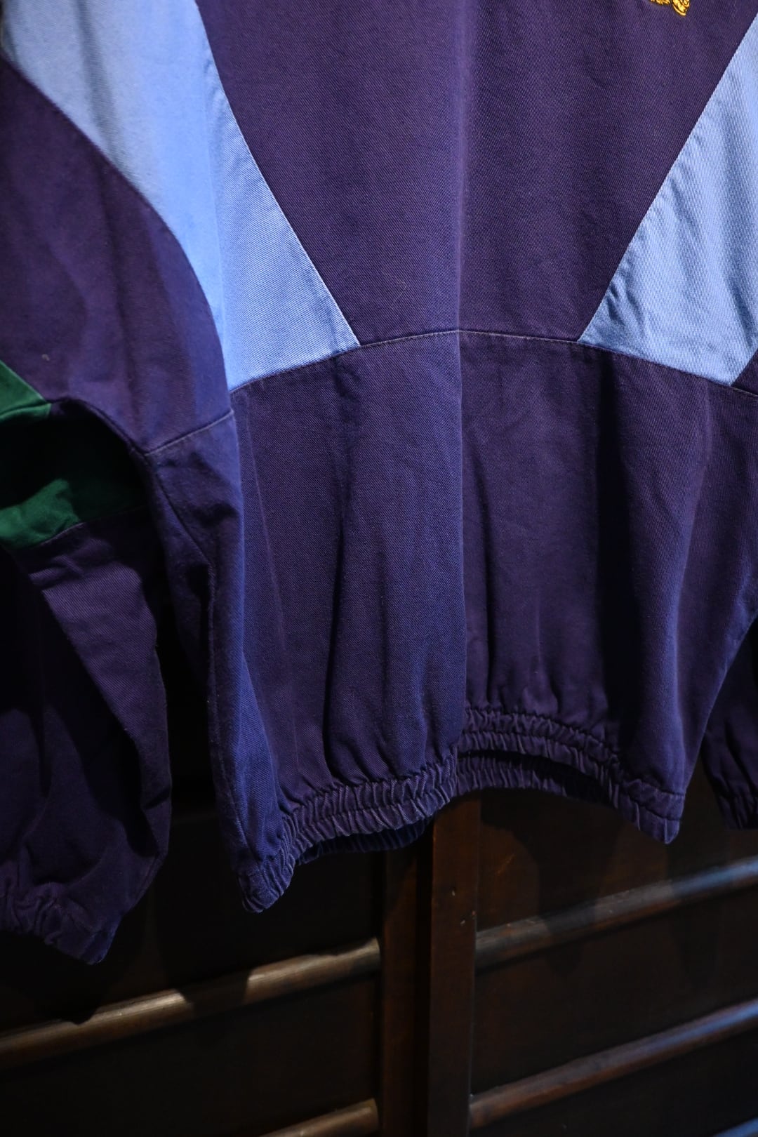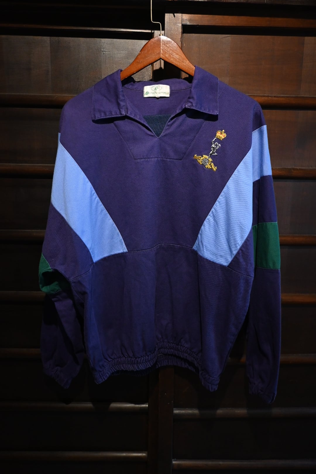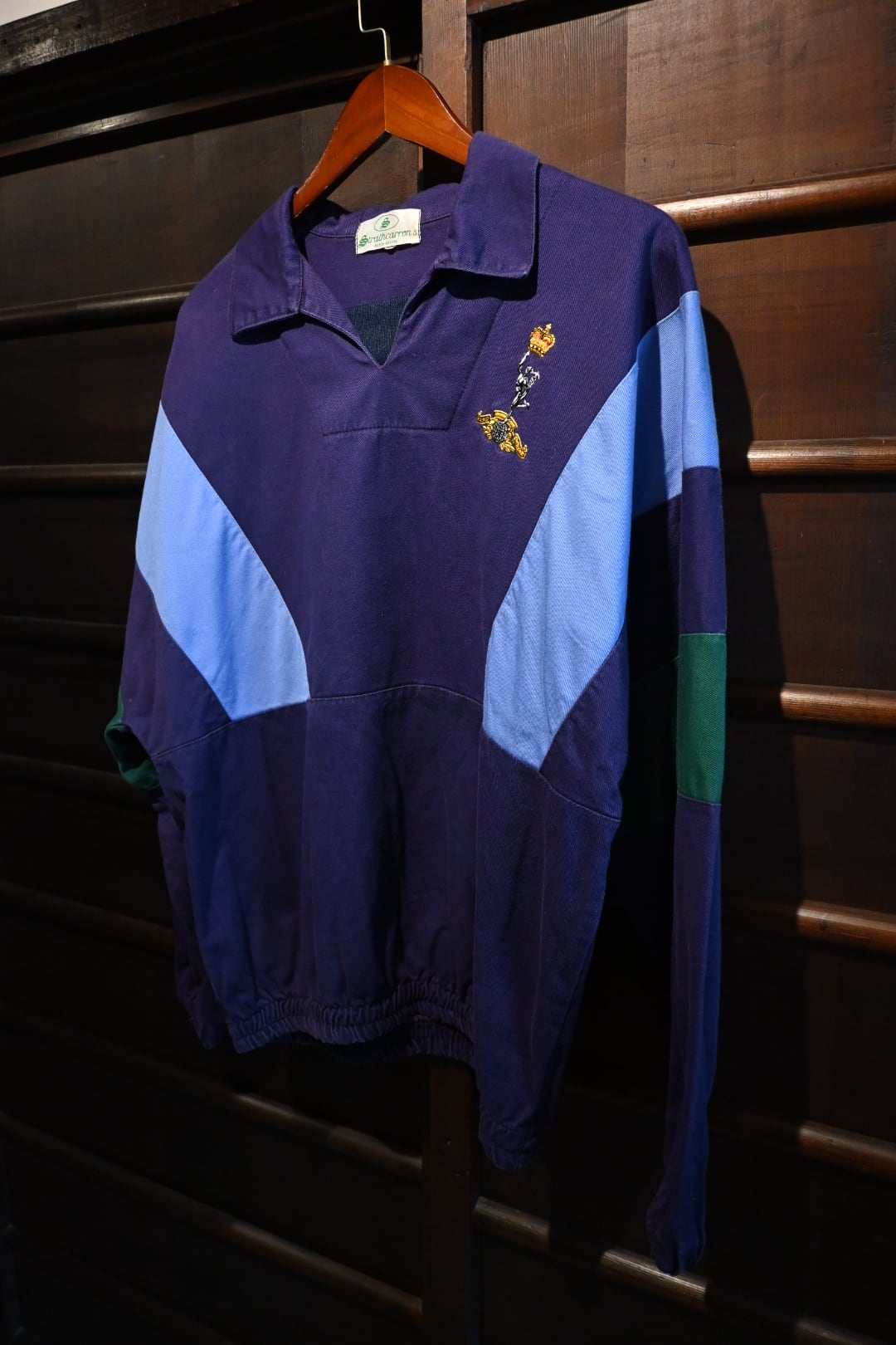 深みのあるネイビーをベースに、ライトブルーとグリーンの切り替えを施したスポーティーなデザイン。胸元にはクラウンとロゴの刺繍が入り、クラシックな雰囲気を引き立てます。