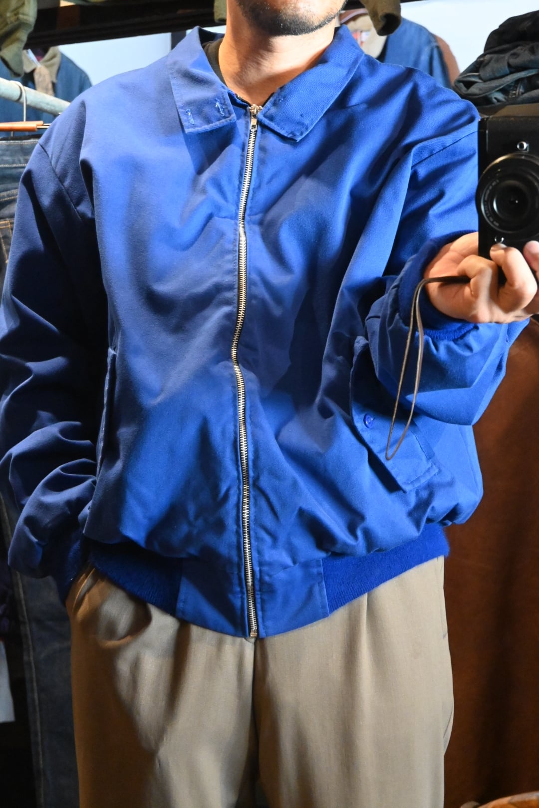 鮮やかなブルーカラーが目を惹く、ヴィンテージのハリントンジャケットです。