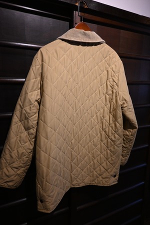 英国老舗ブランド Barbourの定番モデル リデスデイル キルティングジャケット。クラシックなダイヤモンドキルティングとコーデュロイ襟が特徴で、軽量ながらしっかりとした保温性を持つ一着です。落ち着いたベージュカラーは、幅広いスタイルに合わせやすく、秋冬のコーディネートに最適。内ポケットにはBarbourタグが付き、Made in Englandの品質も魅力です。