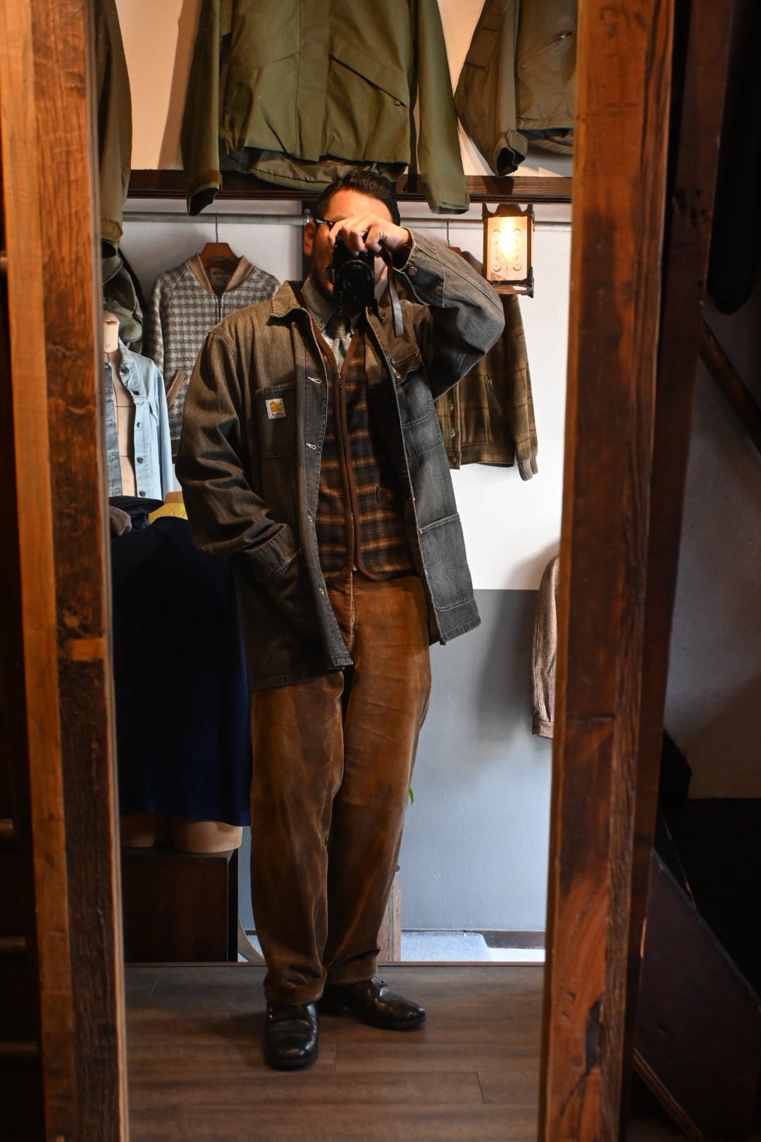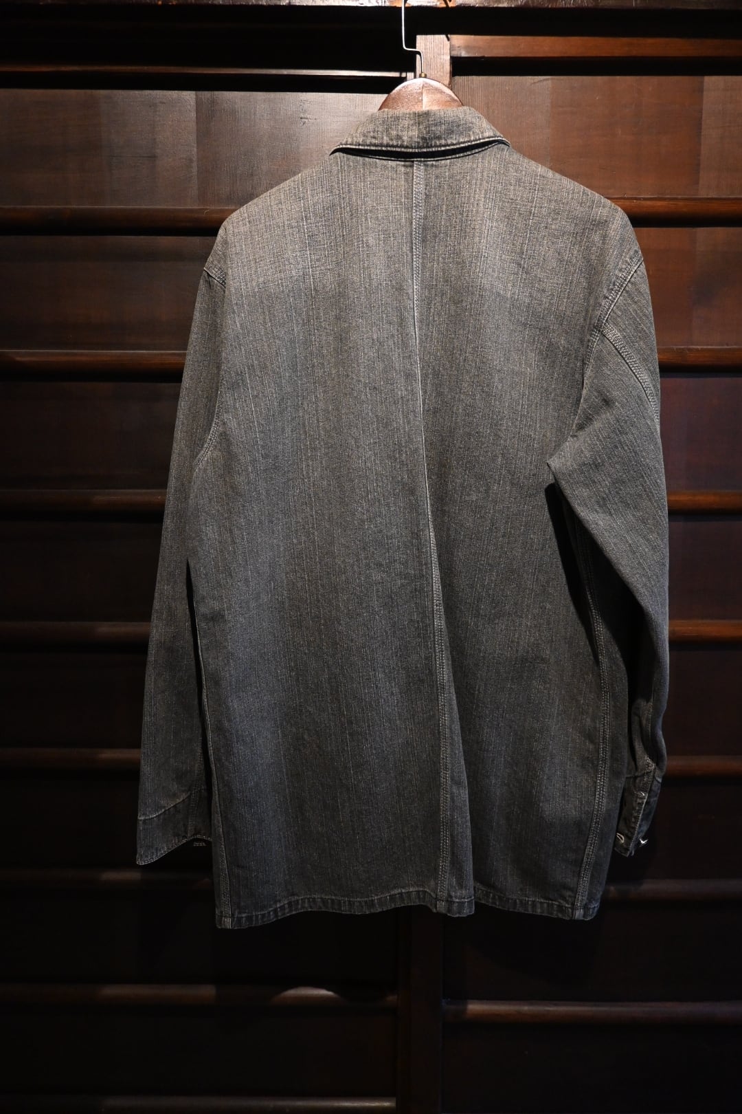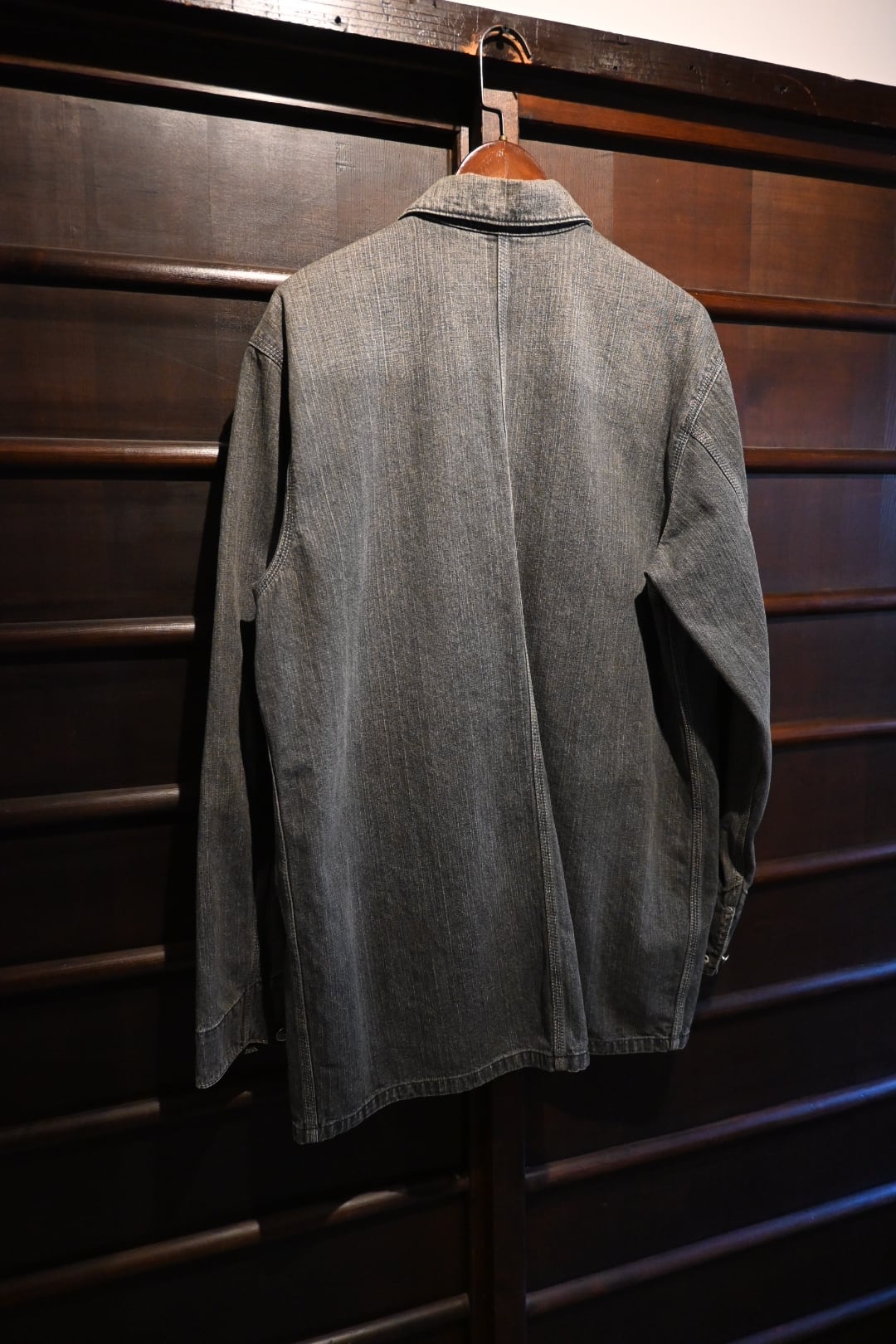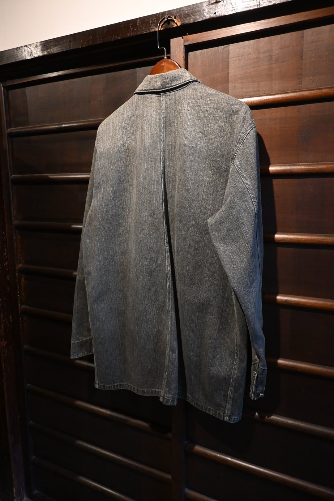 Carharttのデニムチョアジャケットです。丈夫なデニム生地を使用したクラシックなワークジャケットで、実用性とスタイルを兼ね備えています。胸ポケットのブランドロゴやメタルボタンなど、ワークウェアらしいディテールが魅力です。
