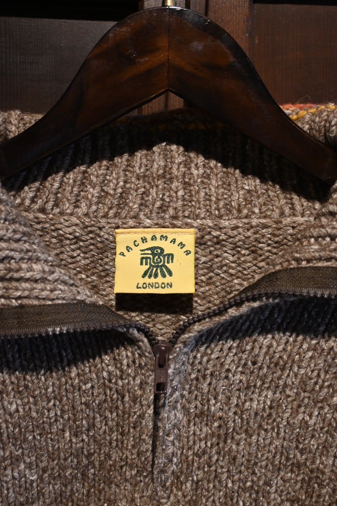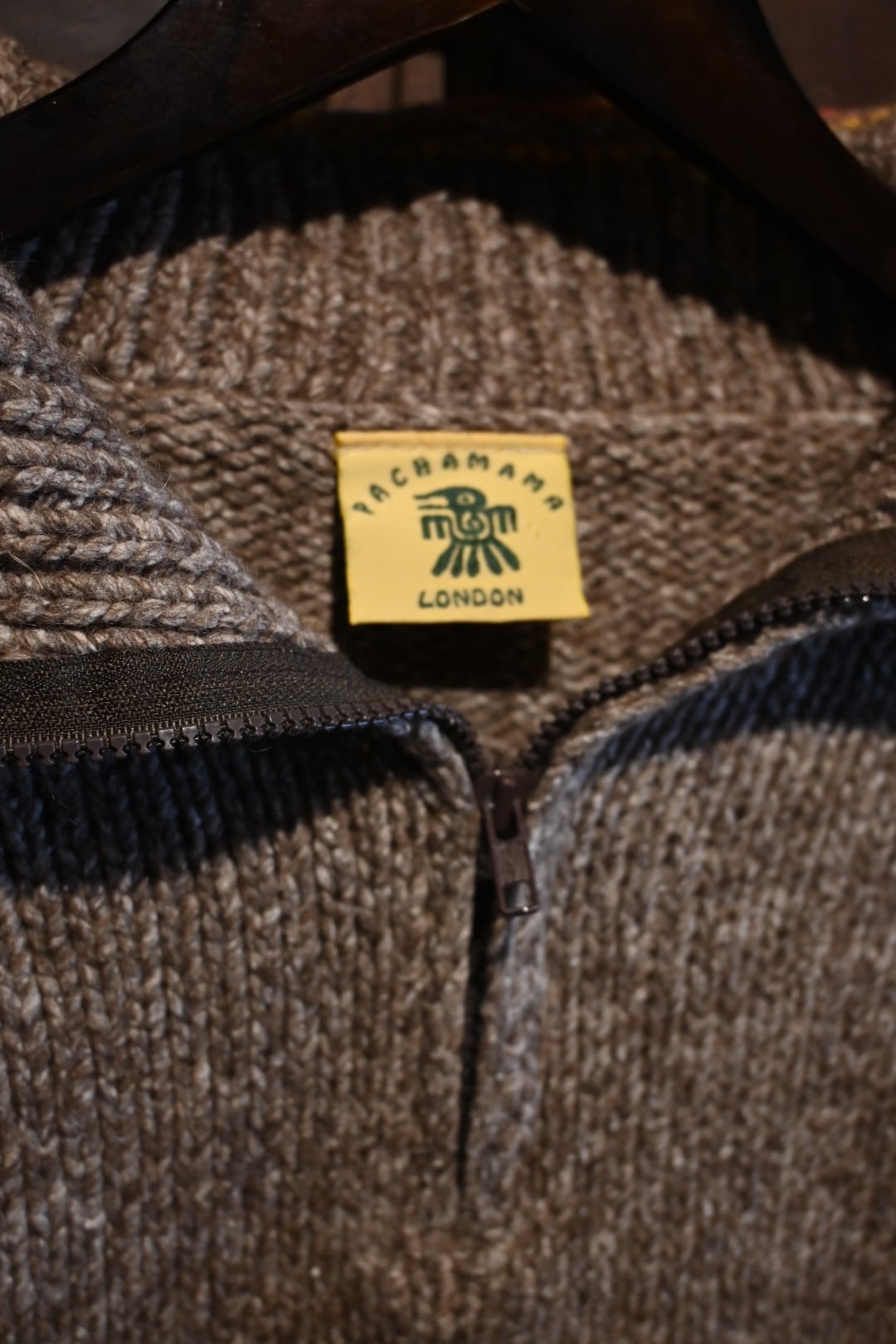 イギリスのブランド Pachamama London によるハンドメイドのハーフジップセーターです。