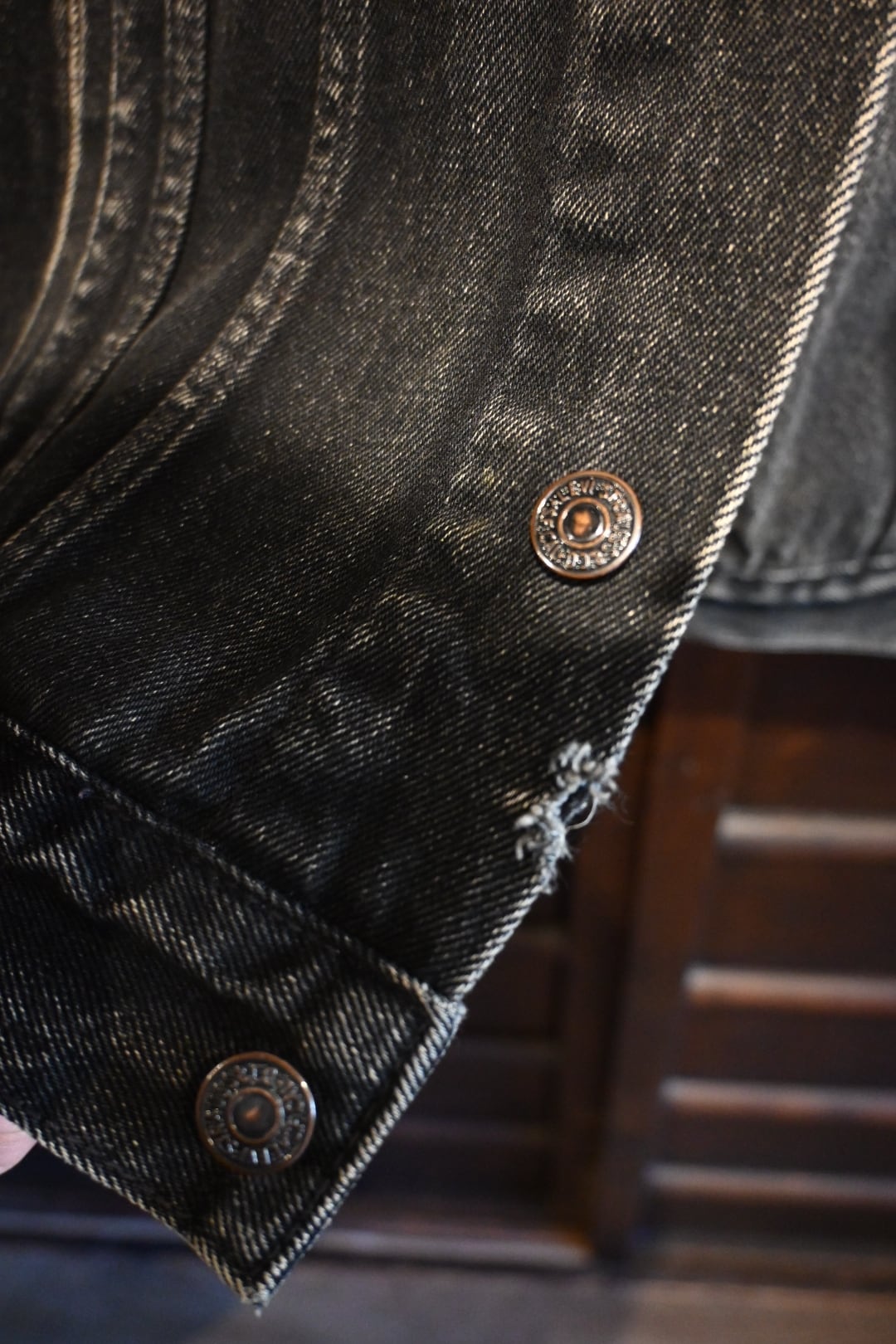 ブラックデニム仕様で、クラシックな形をベースにしながら、90年代らしいシルエットと風合いを持つ一着です。