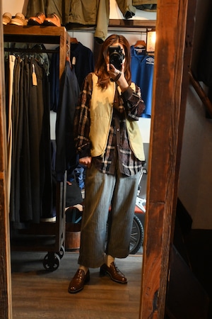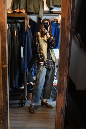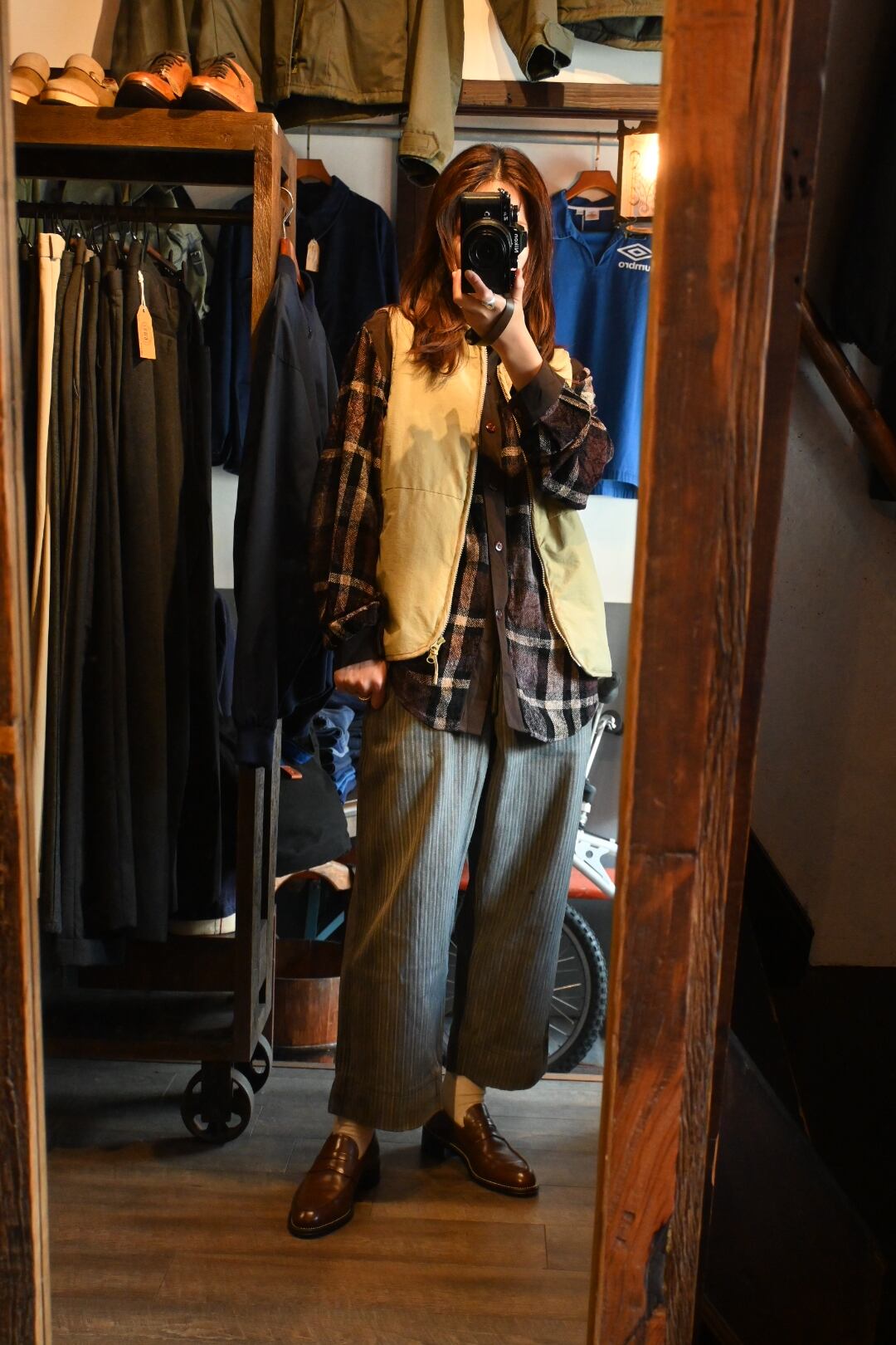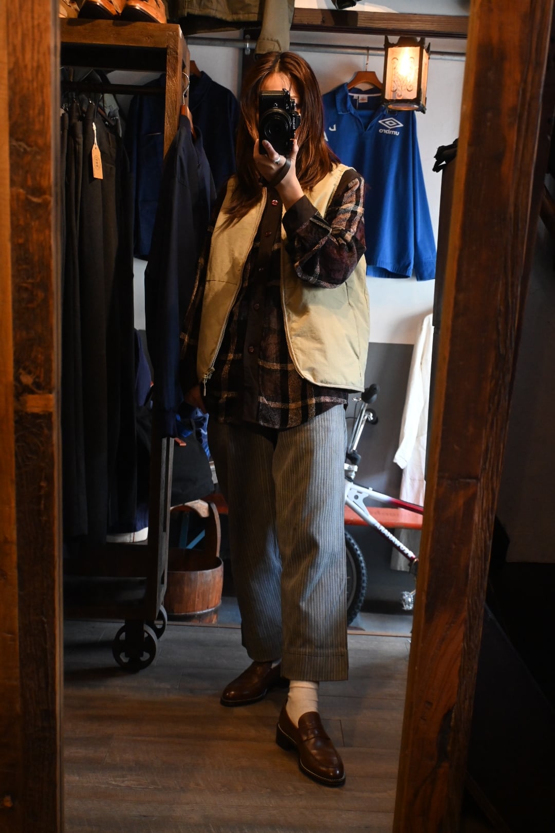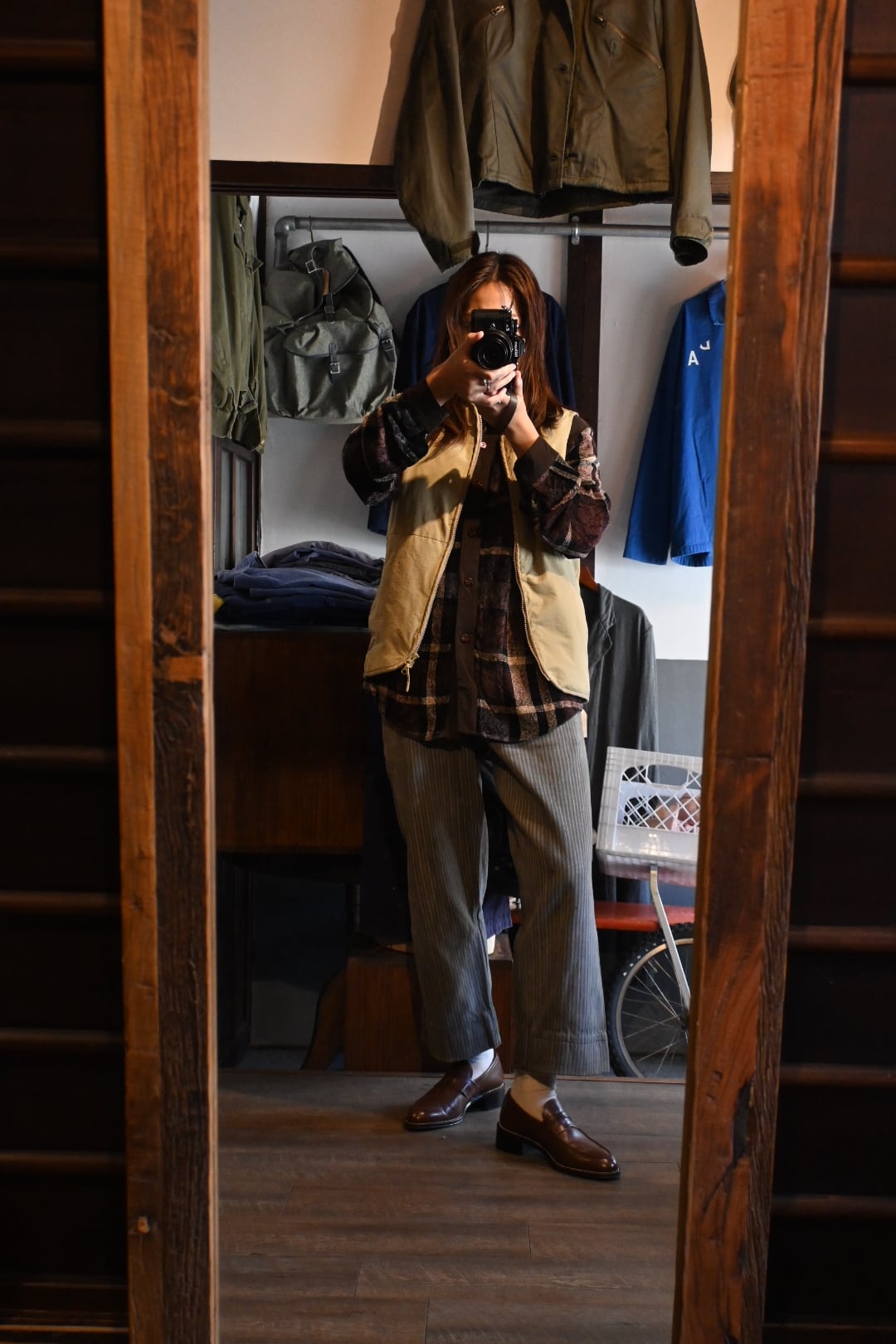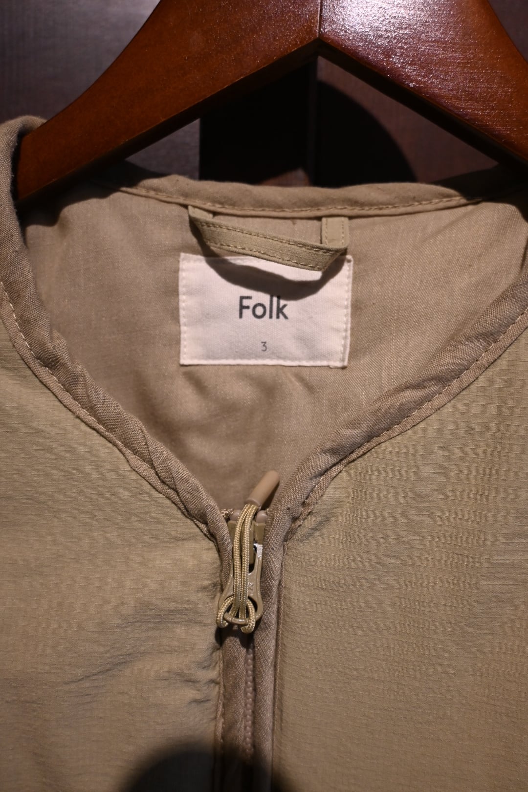 イギリス発のブランド Folk による中綿入りベストです。カラーは落ち着いたカーキで、ミニマルなデザインが特徴的です。軽量で動きやすく、インナーにもアウターにも合わせやすいです。