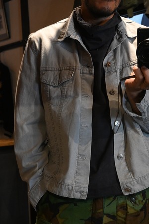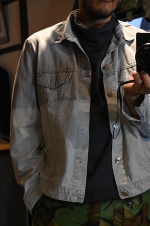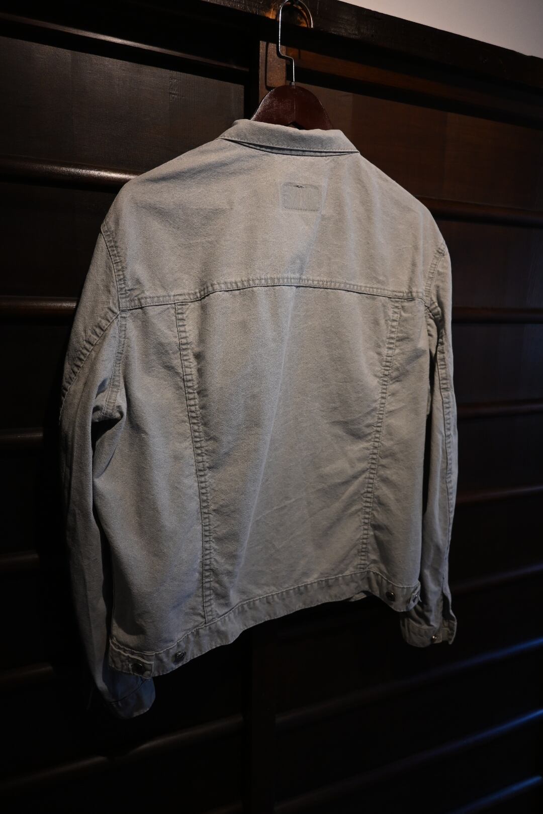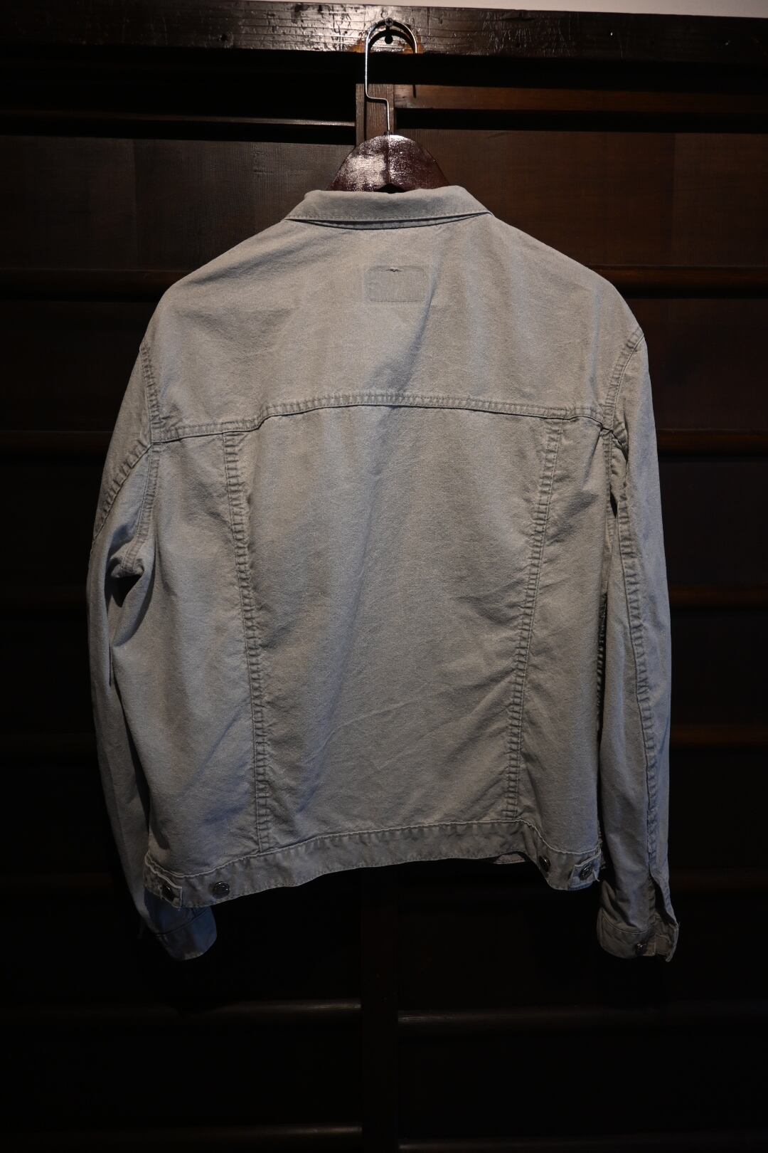 70506で、定番のトラッカージャケットをベースにした一着。珍しい薄いグレーカラーが特徴で、落ち着いた雰囲気ながら存在感があります。