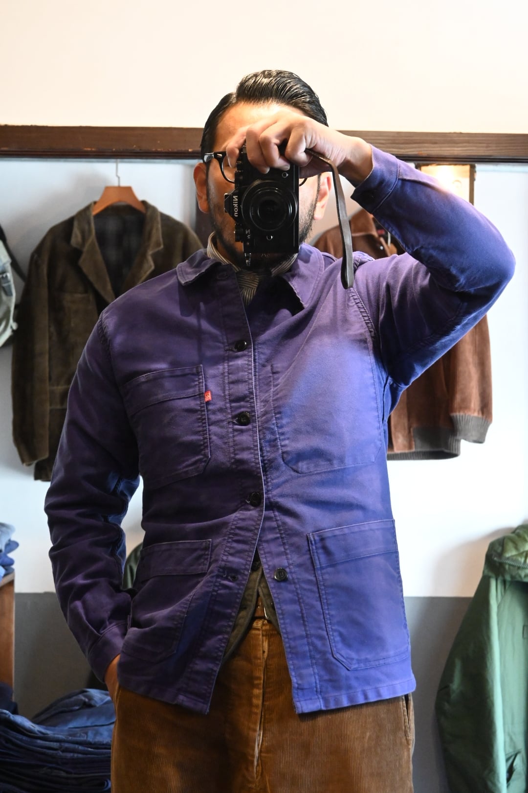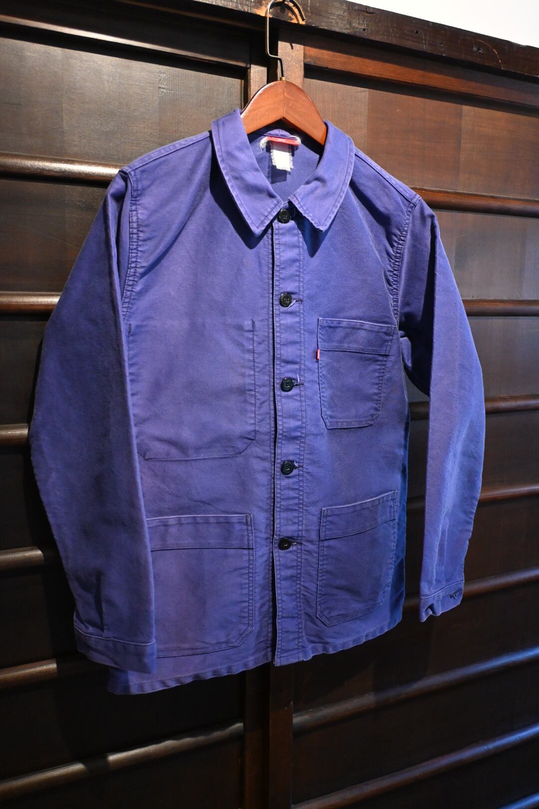 フランスの老舗ブランド Adolphe Lafont 製のヴィンテージ・モールスキンジャケットです。紫がかったブルーのモールスキン生地が使用されています。