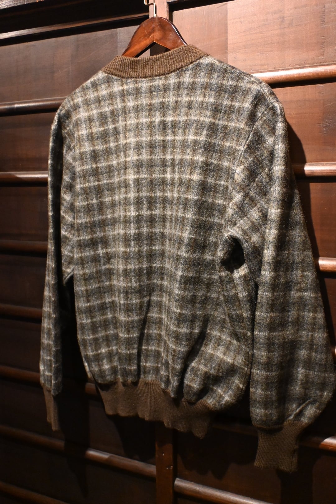 落ち着いたチェック柄が特徴で、クラシックなヨーロピアンニットの雰囲気を持つ一着です。