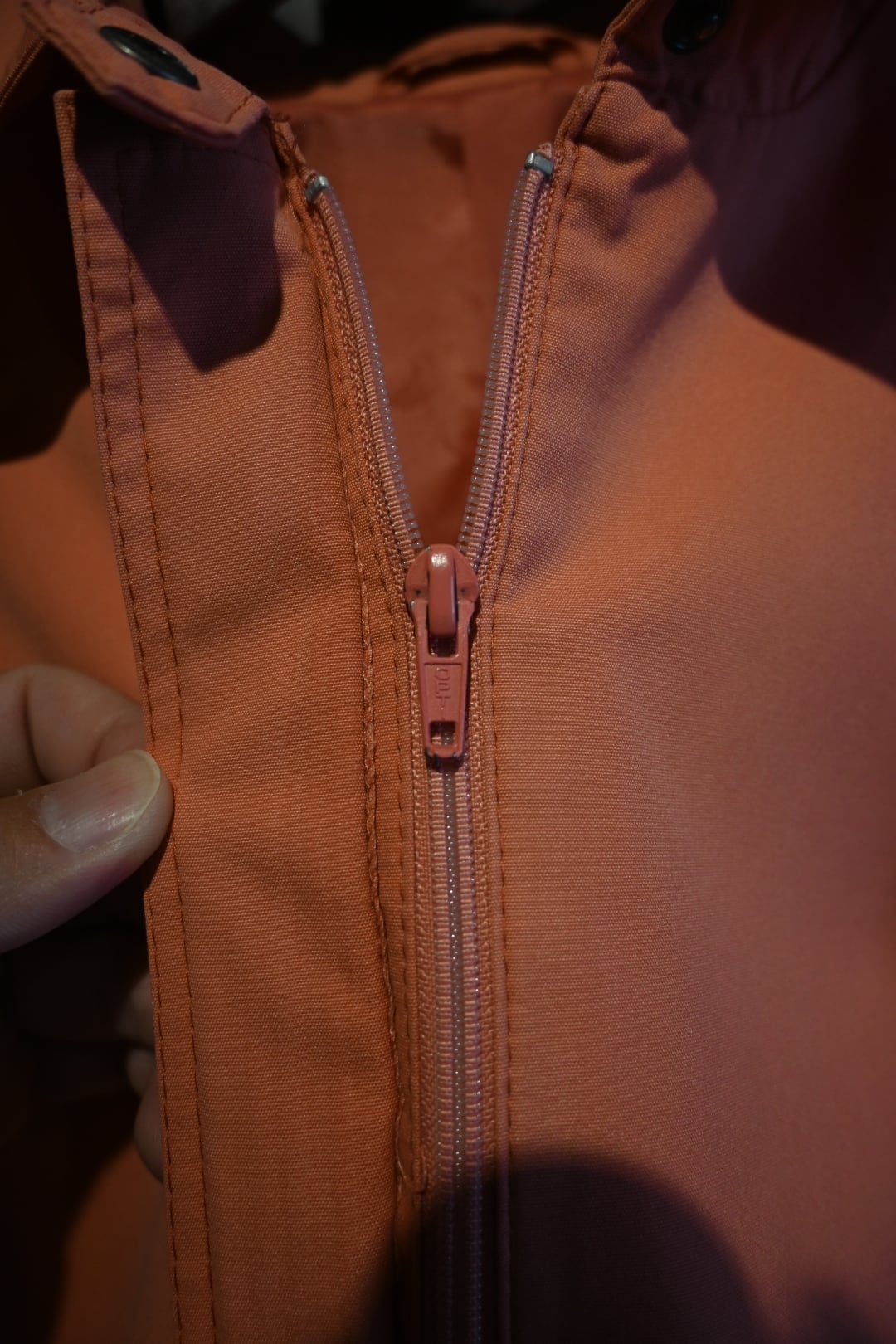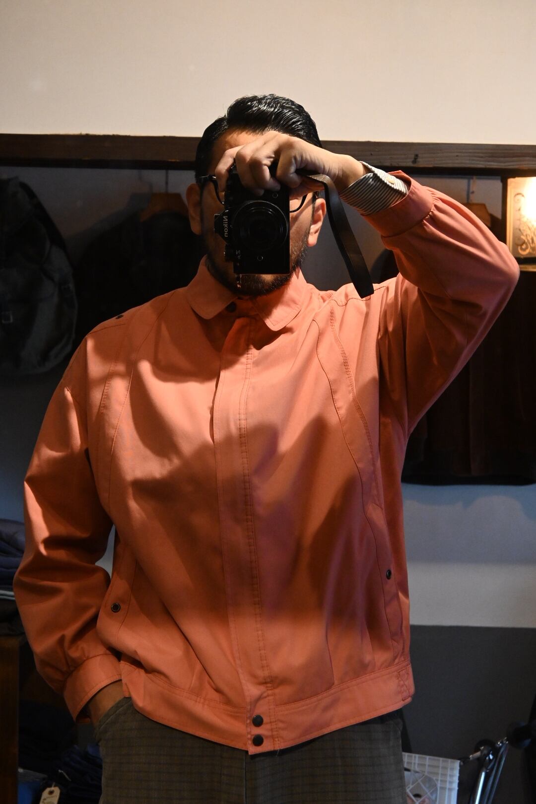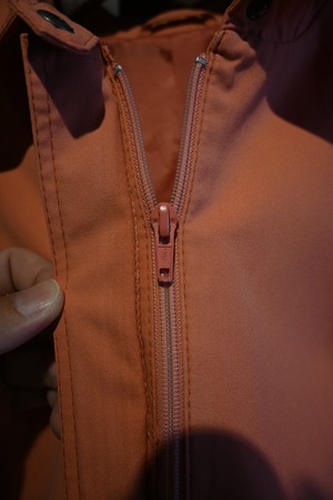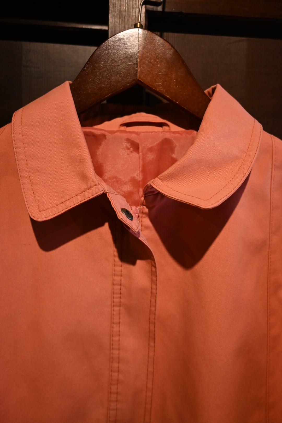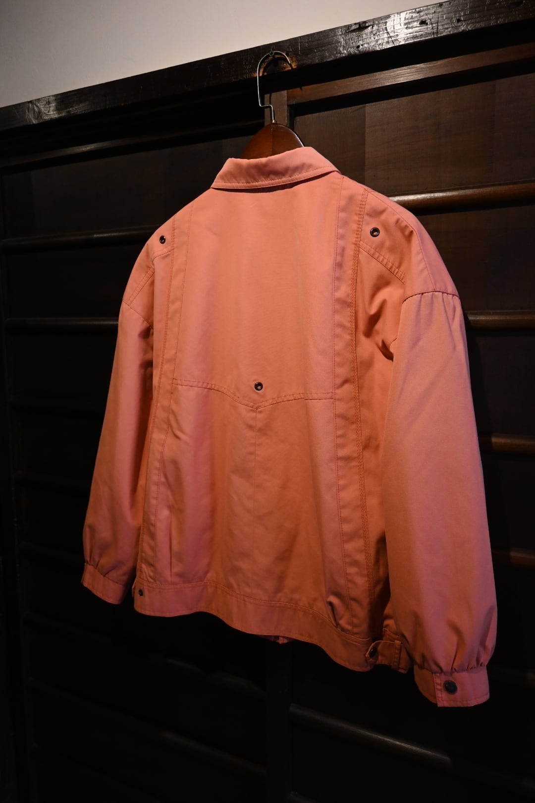 珍しいコーラルピンクのカラーが映える一着。