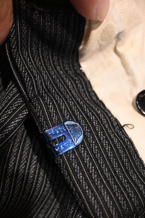 細かなピンストライプが走る上品なデザイン。ウール混と思われる生地は程よい厚みとハリがあり、ヴィンテージ特有の高級感があります。