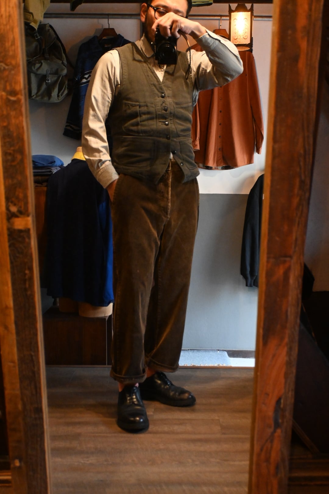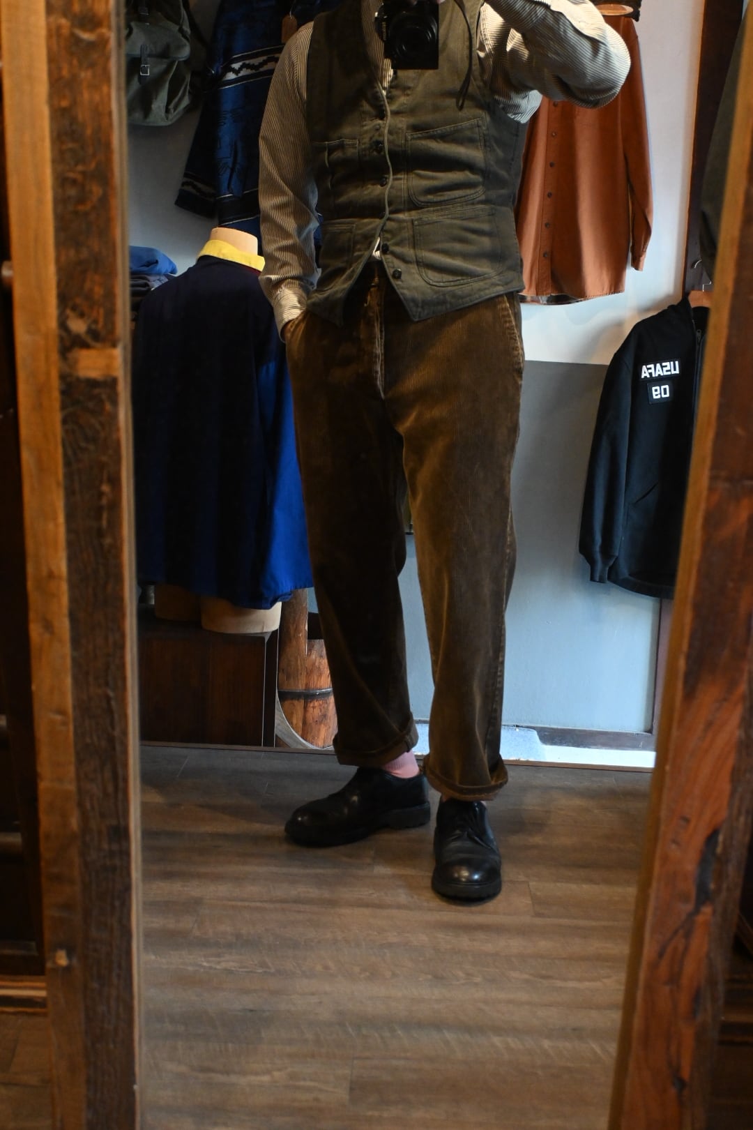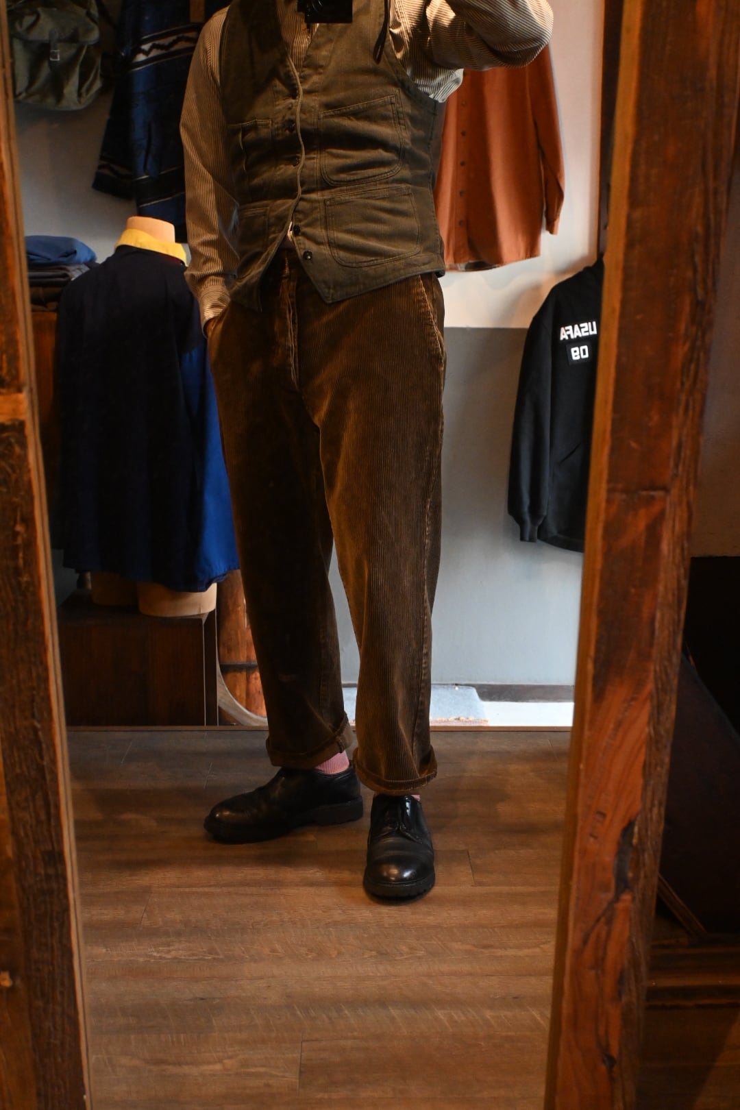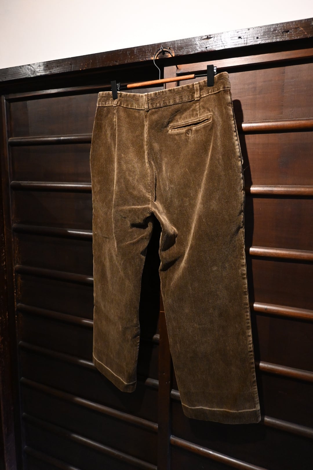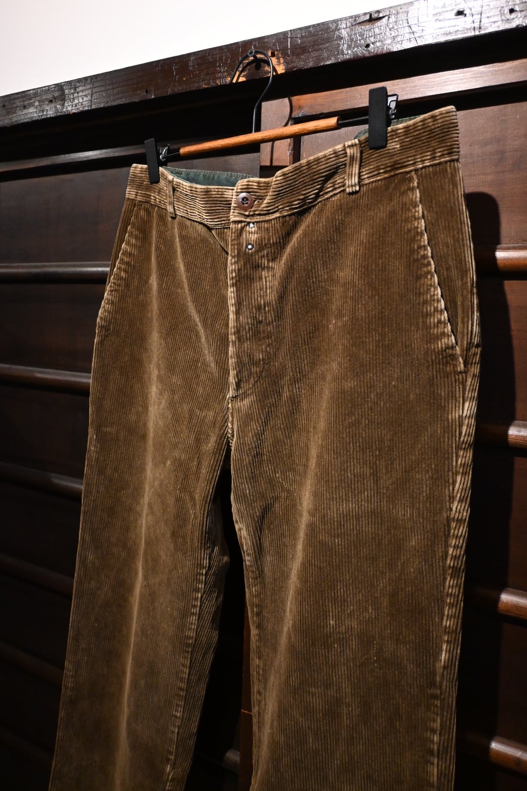 フランス製ヴィンテージ・コーデュロイワークパンツです。重厚な太畝コーデュロイ素材を使用し、当時の労働者用ワークウェア特有の無骨な雰囲気を感じられる逸品です。