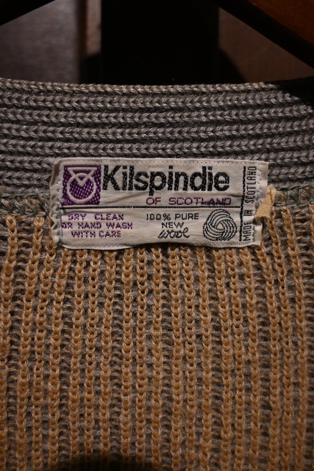 スコットランド製 Klispindie of Scotlandのヴィンテージニットカーディガンです。