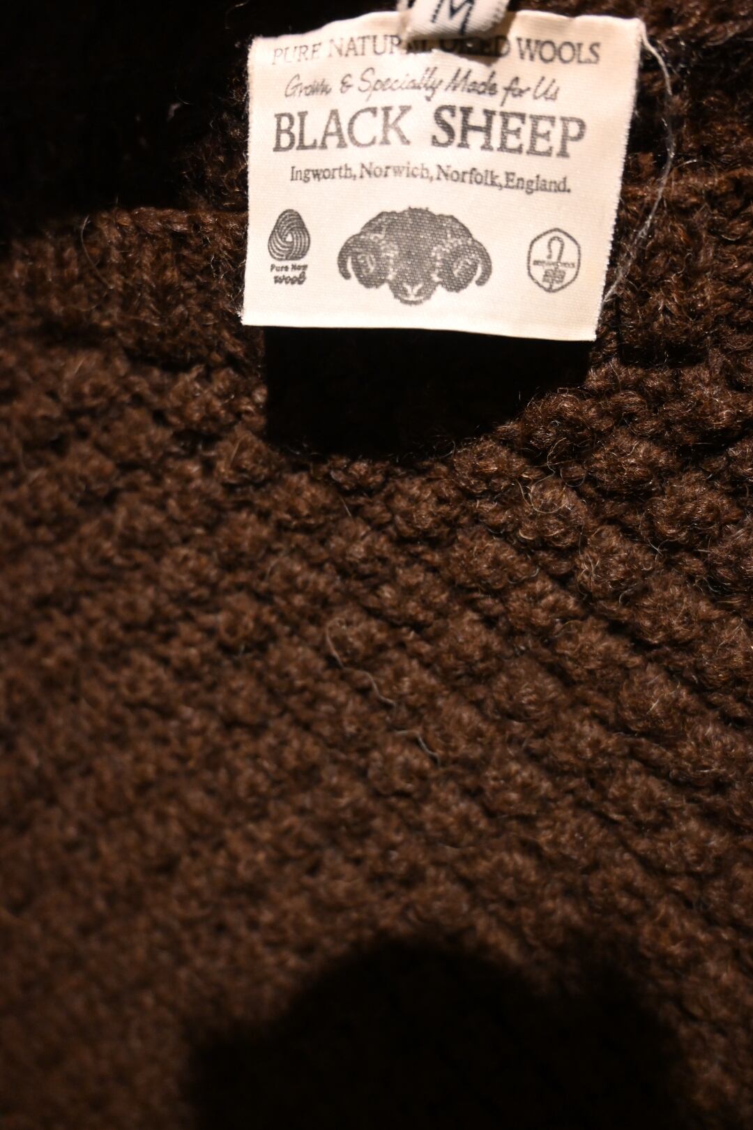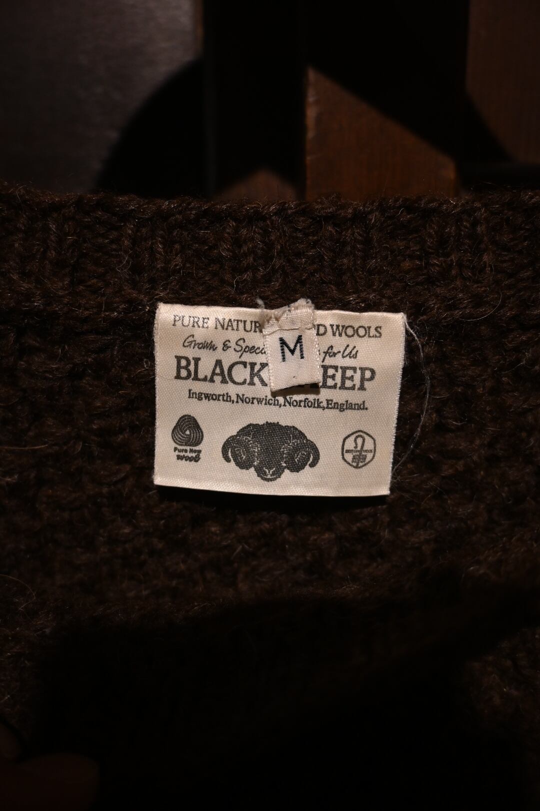 イングランドノーフォーク州製の表記があり、上質な天然ウールを使用した本格的な英国ニット。