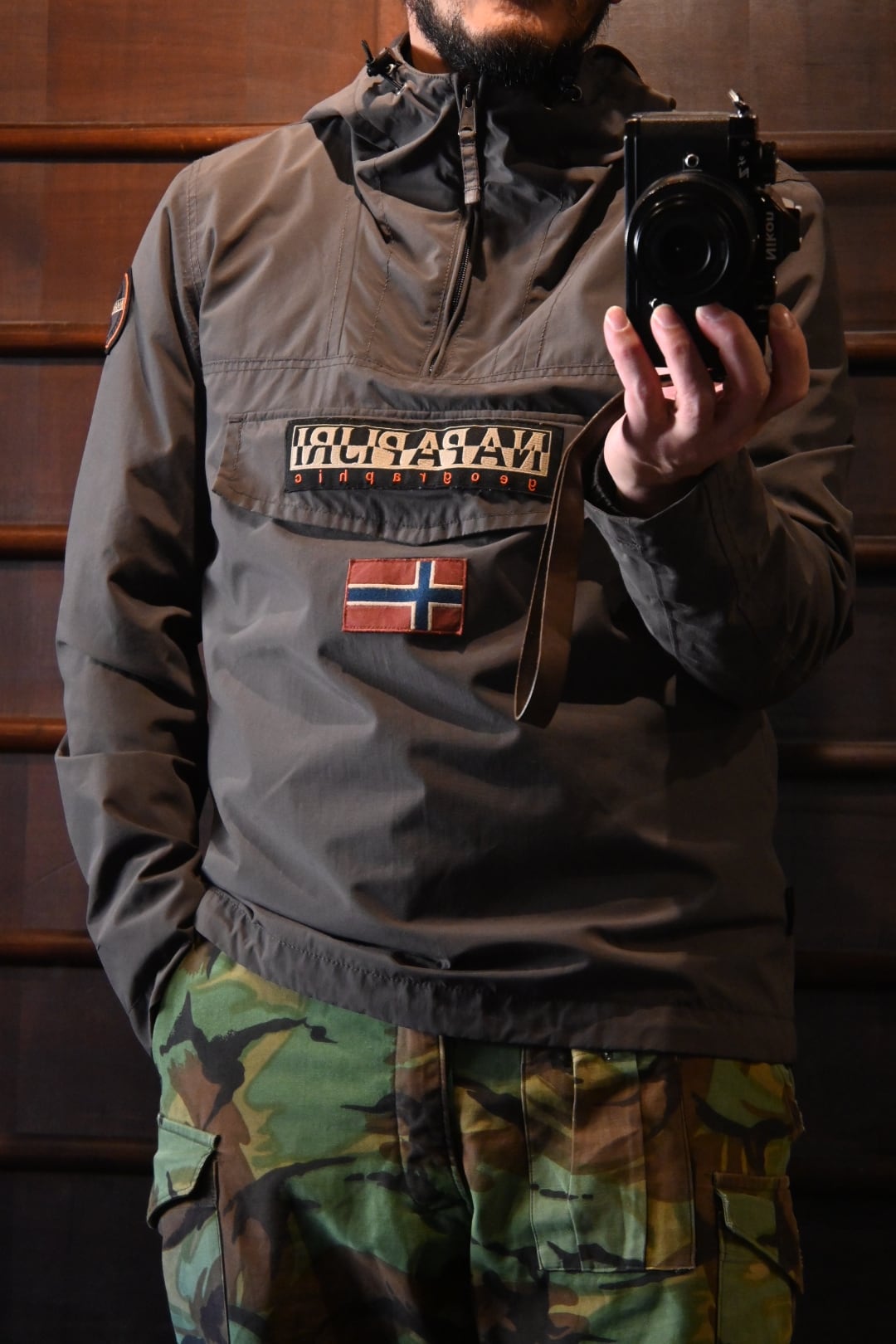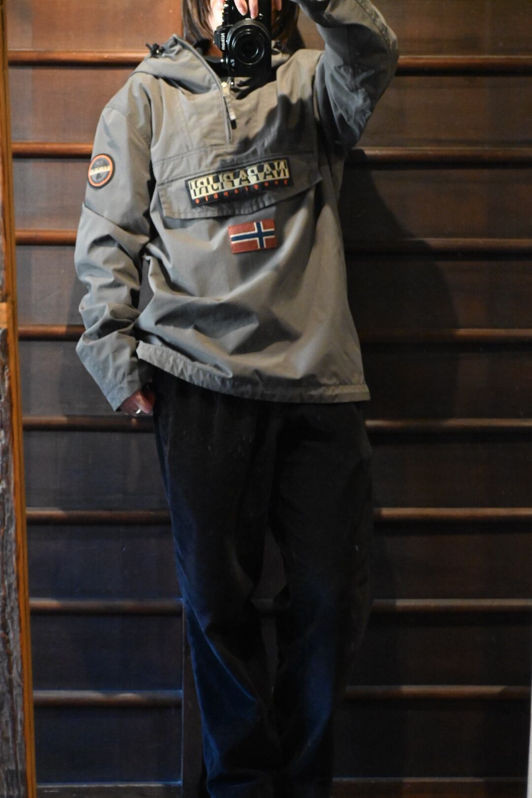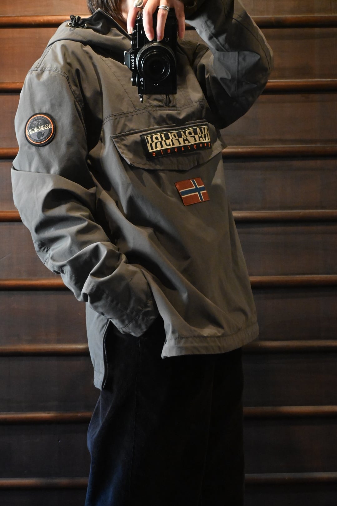 フロントにブランドロゴとノルウェー国旗パッチを配した、Napapijriらしいアイコニックな一着。ハーフジップ仕様のプルオーバータイプで、フード付きのため防風性にも優れています。