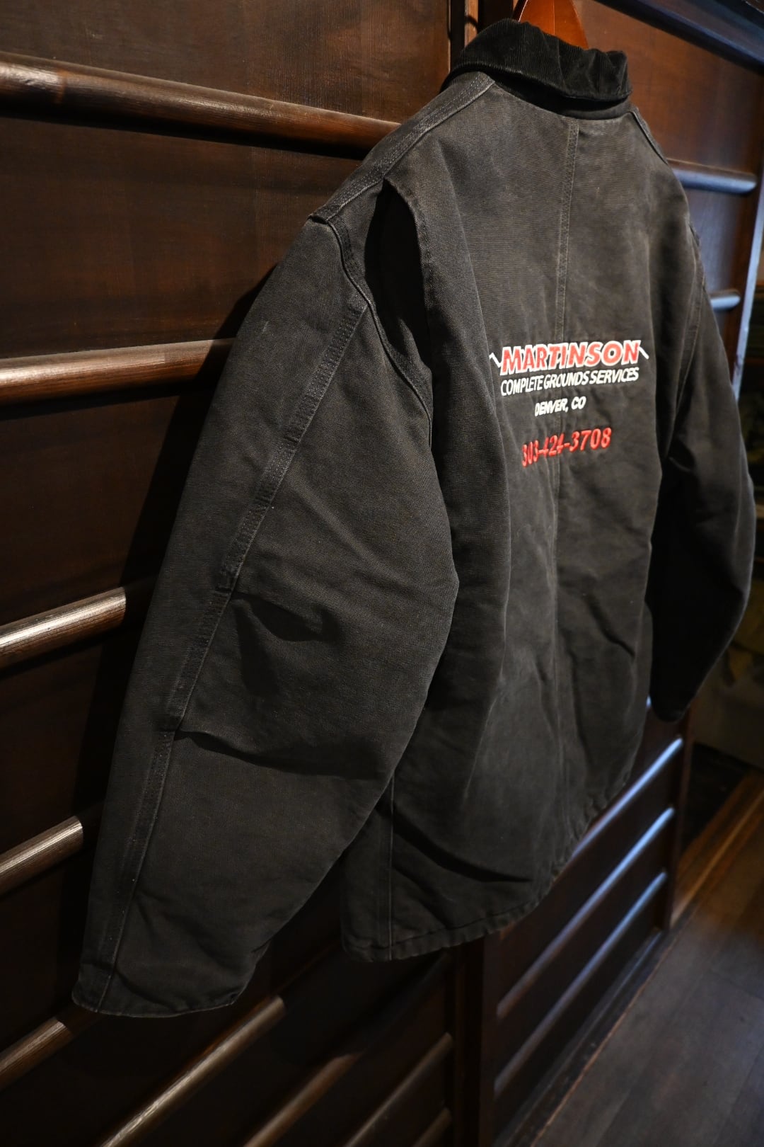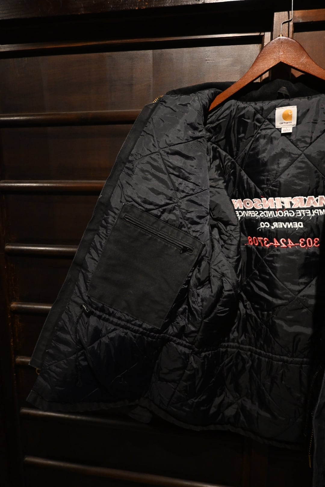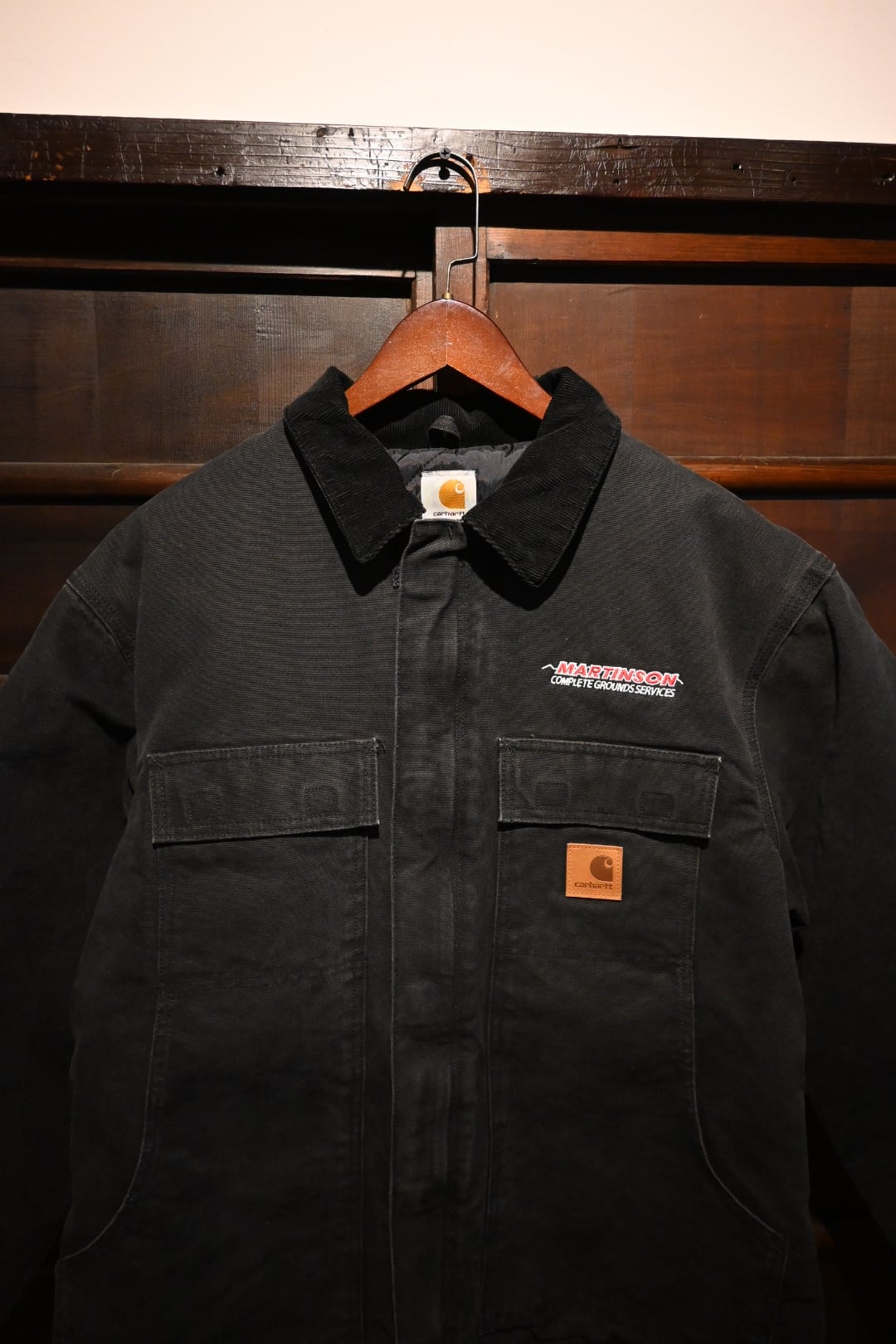 フロントはジップ開閉、胸にはCarharttレザーパッチが付き、左胸・背面には