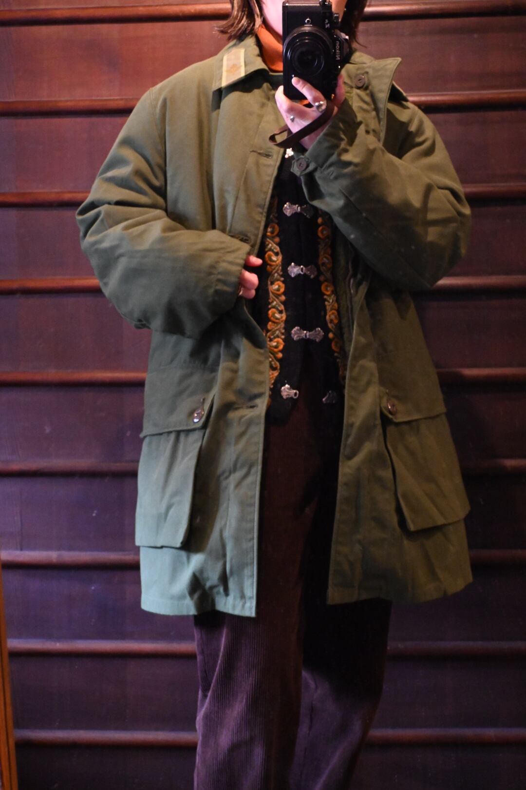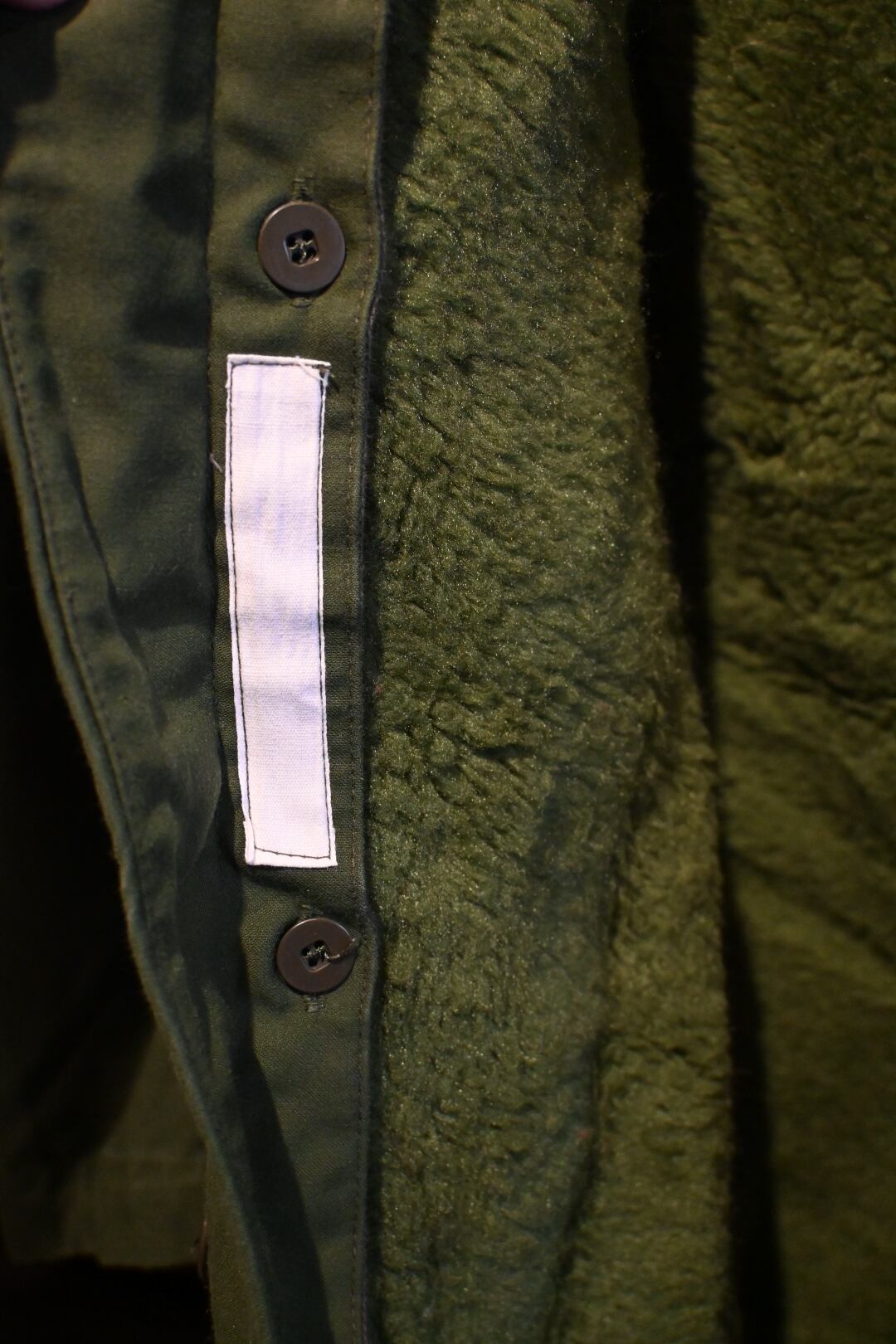 オリーブグリーンのコットンシェルに、内側は厚みのあるパイルライナー仕様で、防寒性に優れたミリタリージャケットです。
