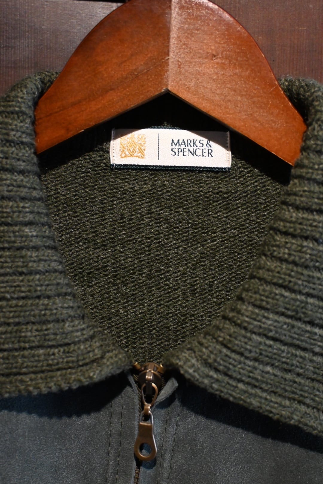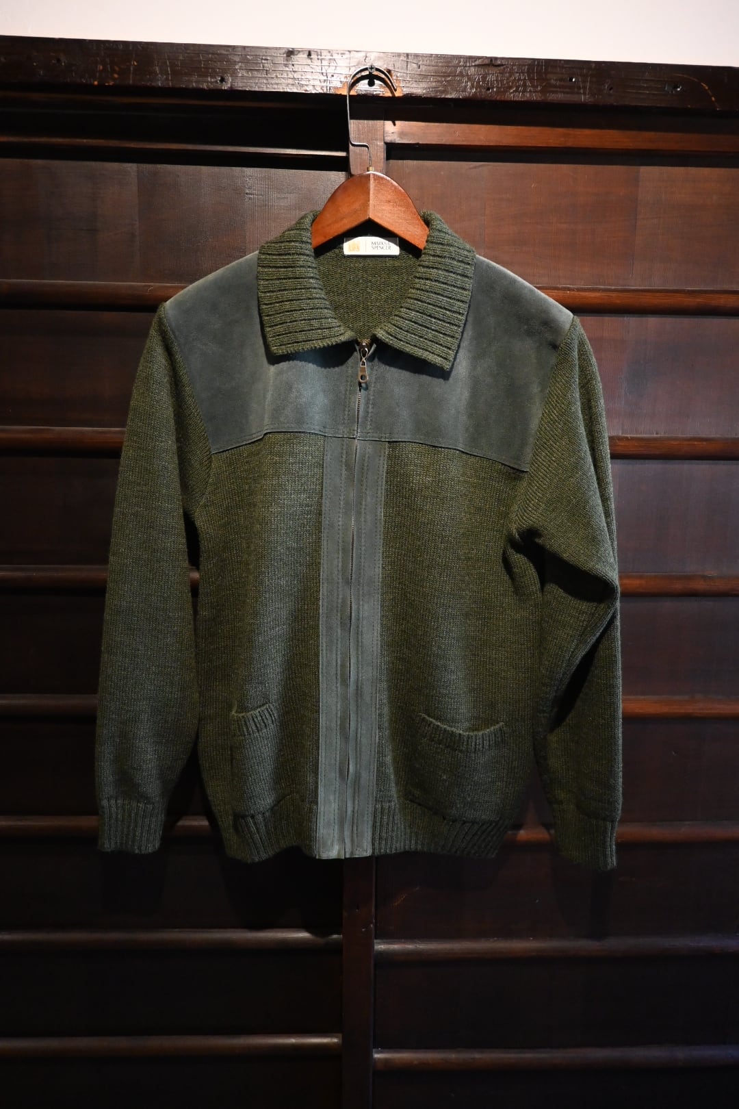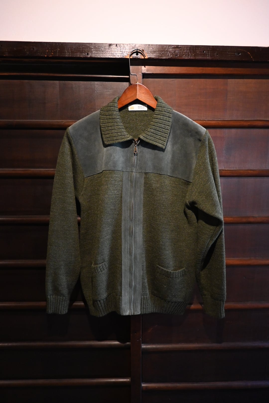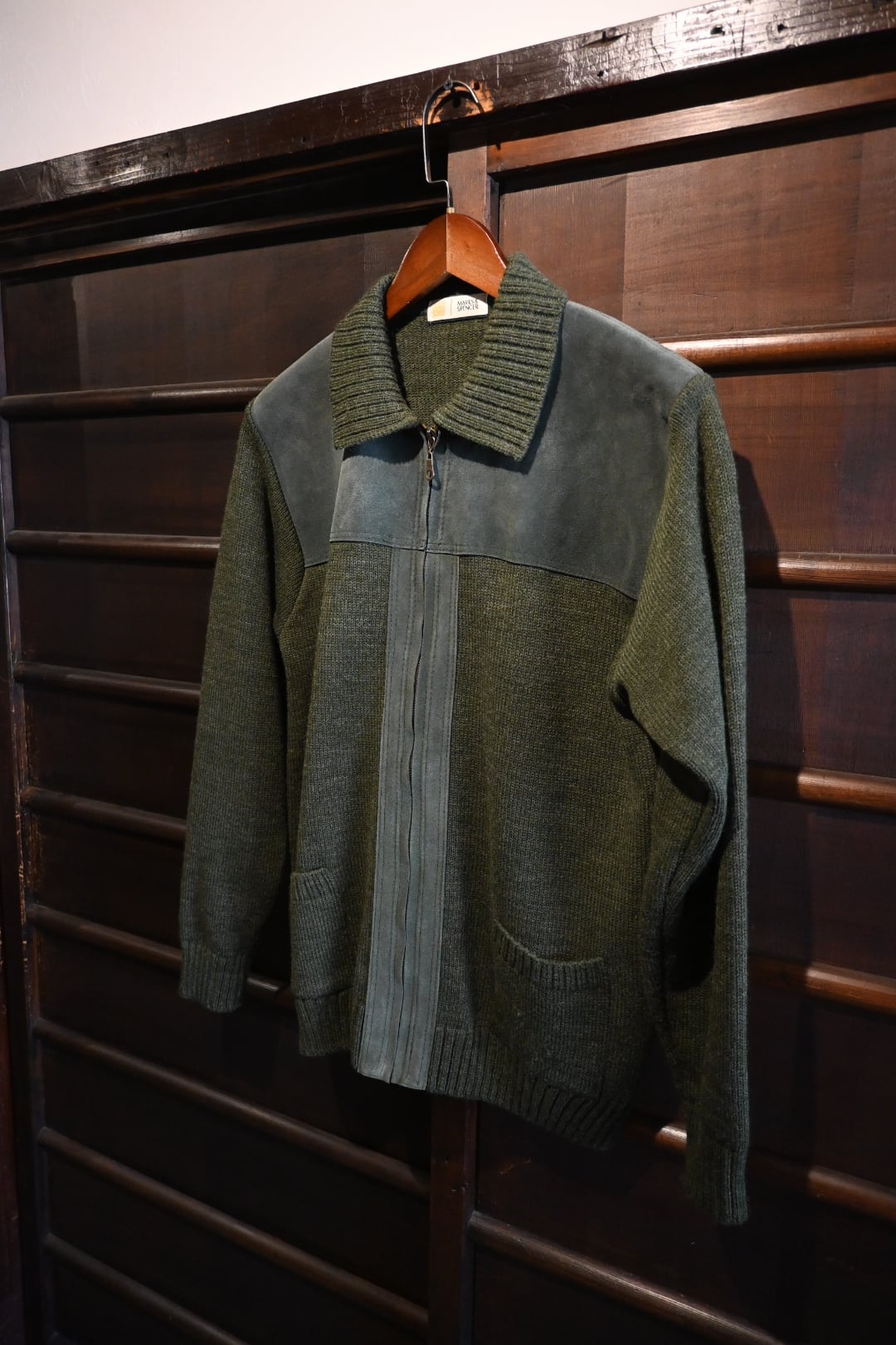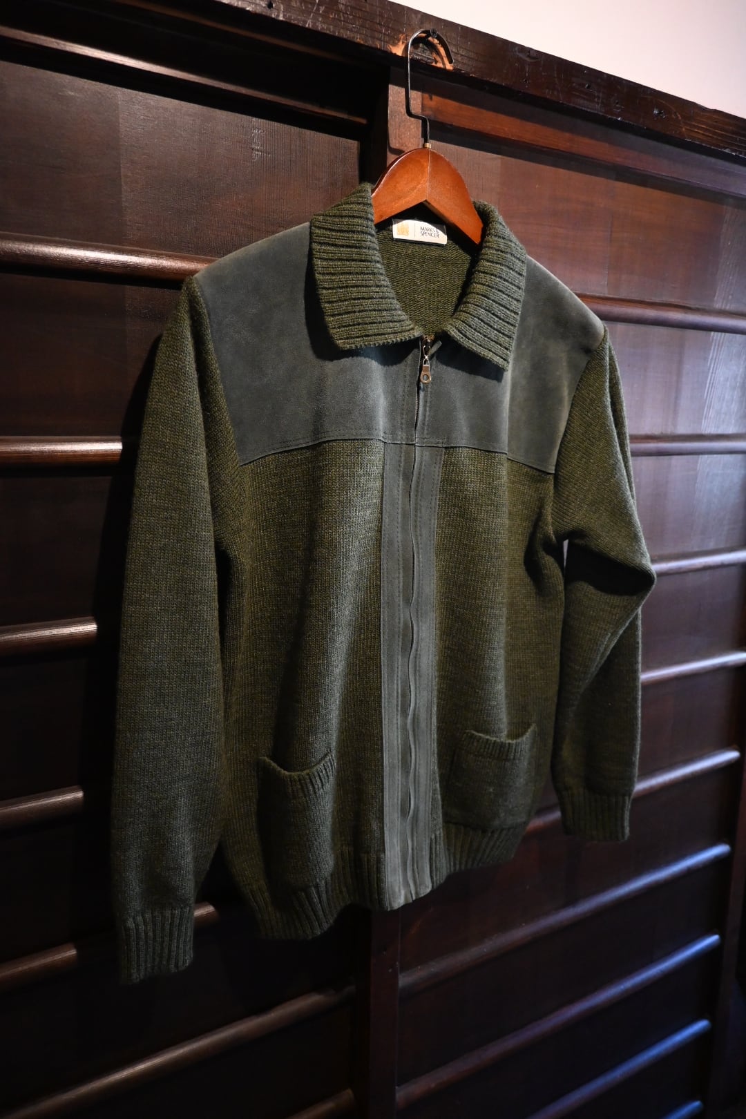 商品名: vintage marks&spencer suede panel knit zip cardigan