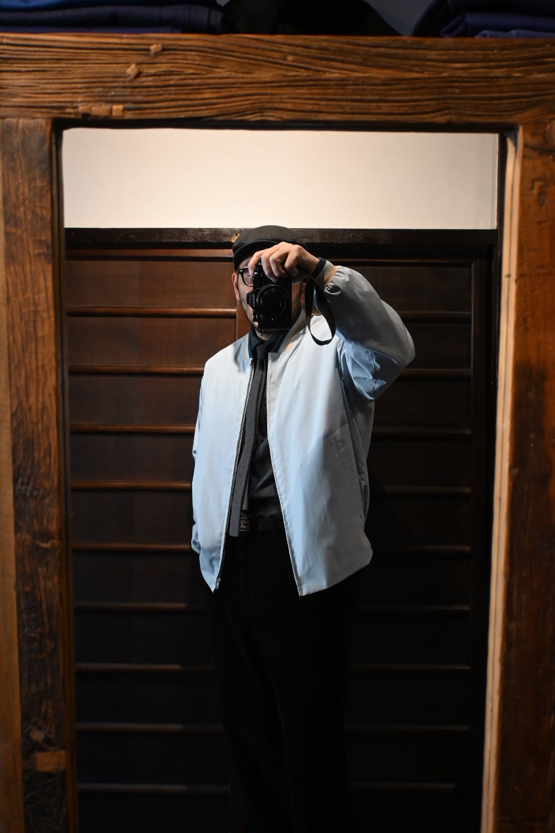 首元はV字リブで、Tシャツやシャツとの相性も良く、シンプルながら雰囲気のある一着です。