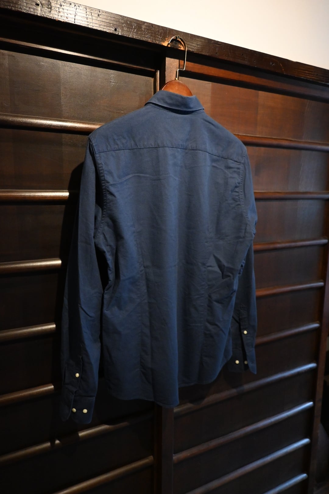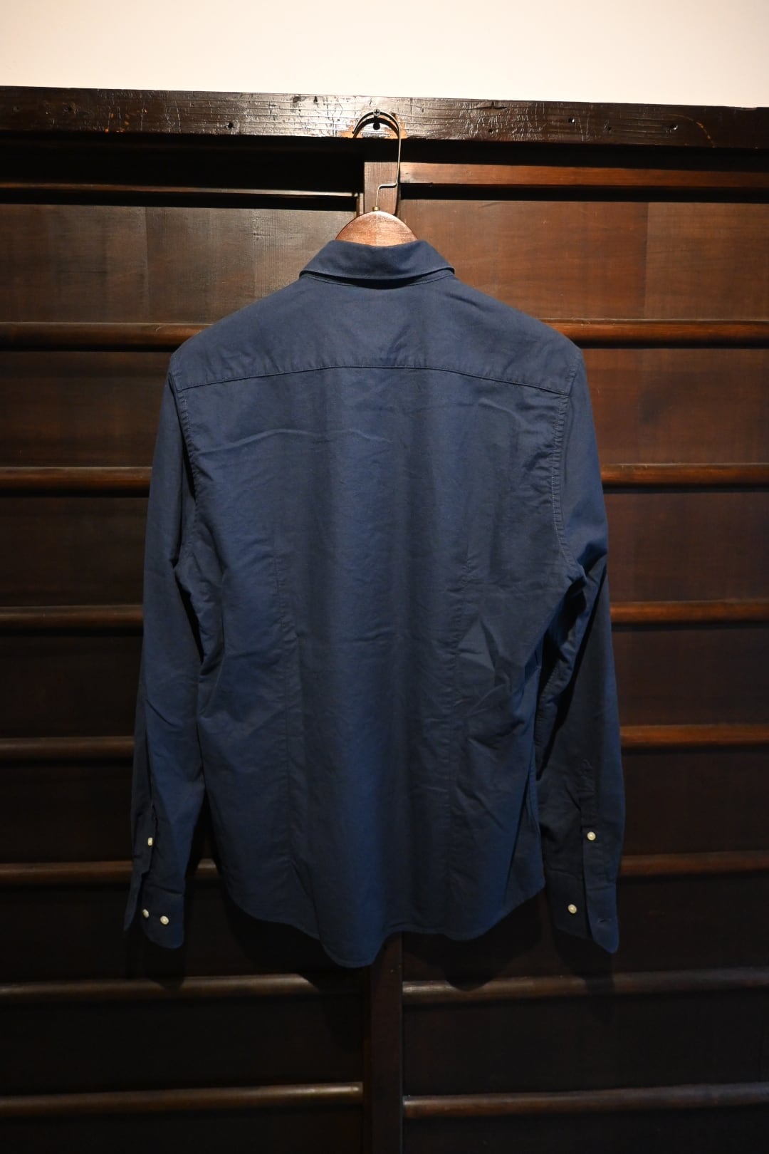 落ち着いたネイビーカラーで、上品かつ汎用性の高い一枚。やや青みのあるダークネイビーで、深みのある色合いです。