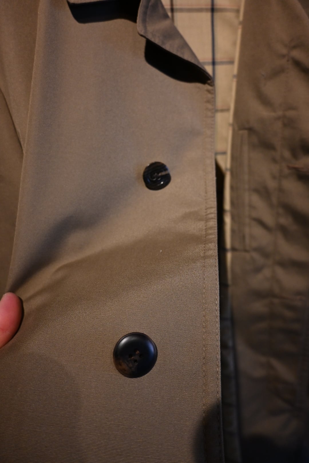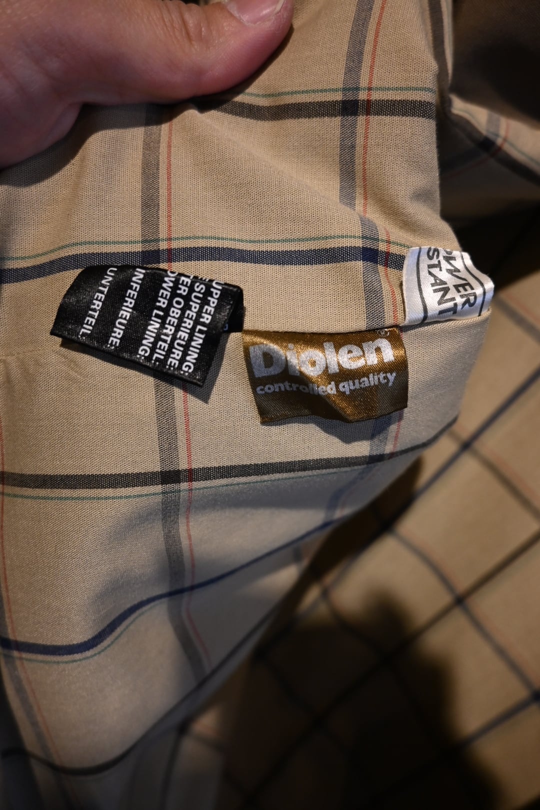 Driolenはヨーロッパで開発されたポリエステル系素材で、耐久性や耐水性に優れ、1970〜90年代のレインコートやトレンチコートによく使われていました。