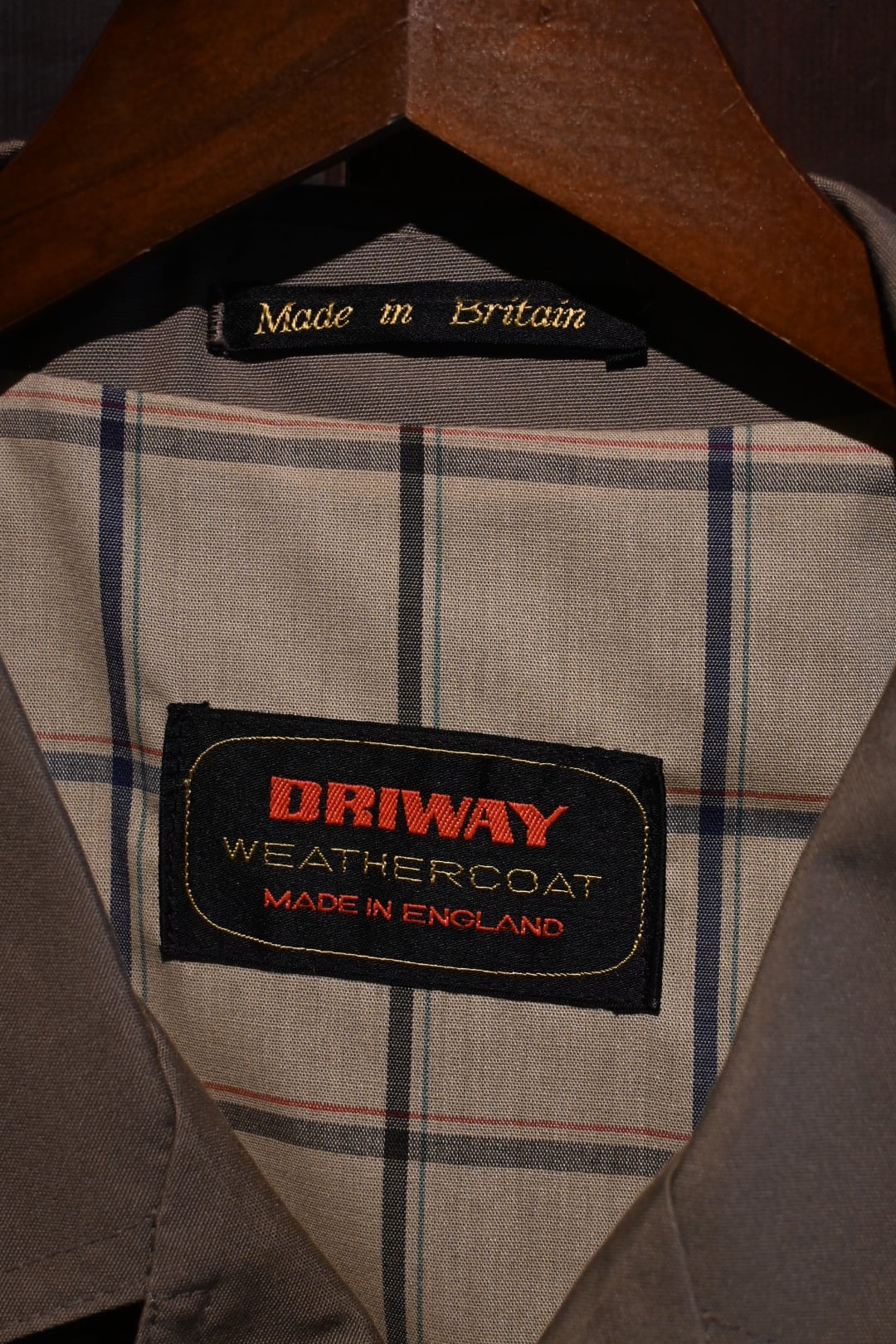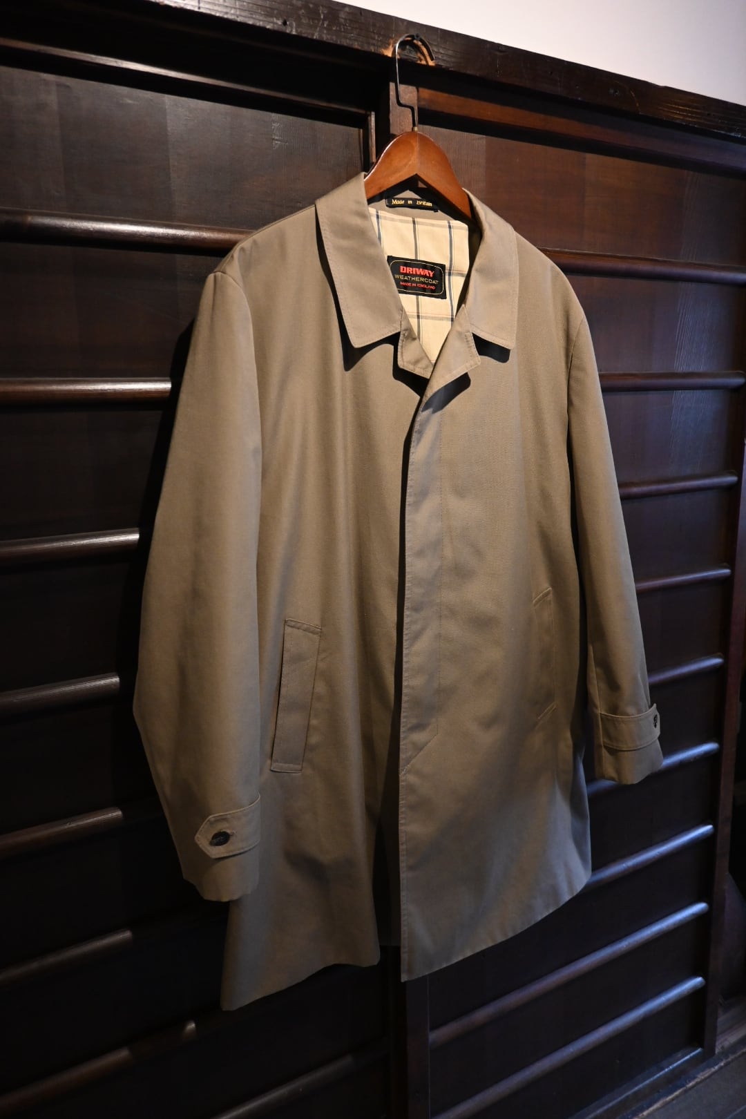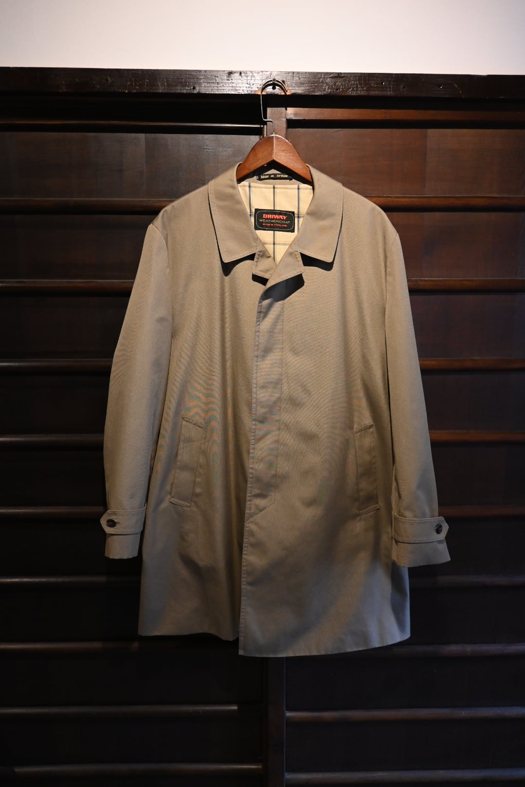 タグに DRIWAY WEATHERCOAT / MADE IN ENGLAND の表記があるイギリス製のコートです。