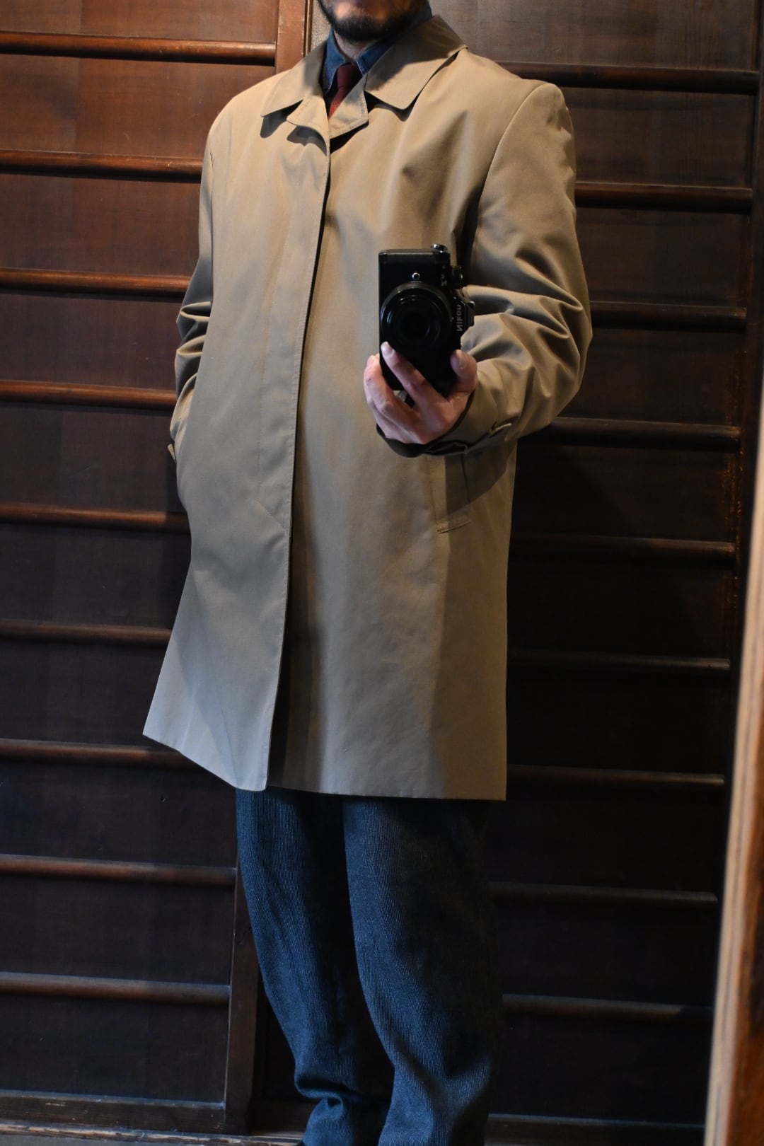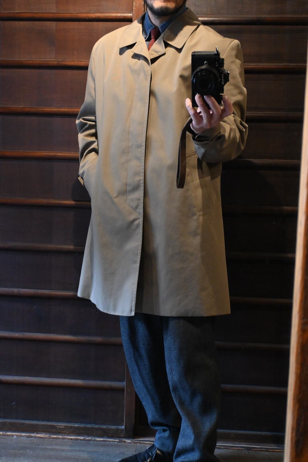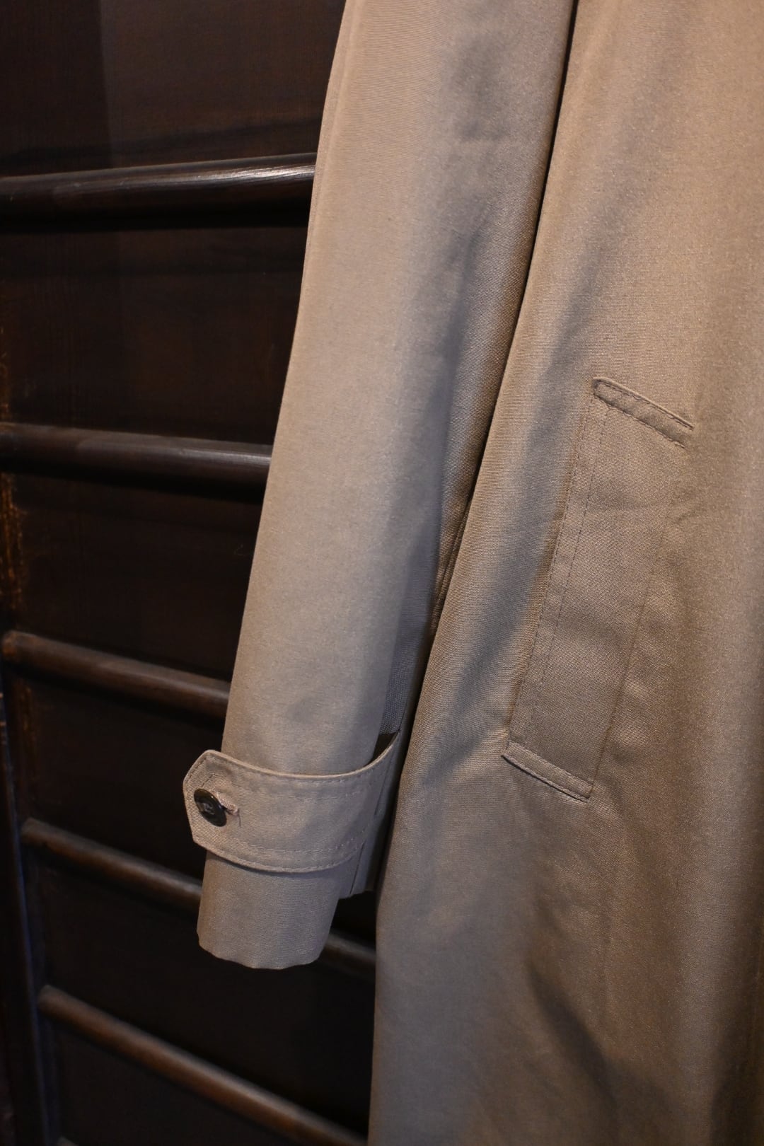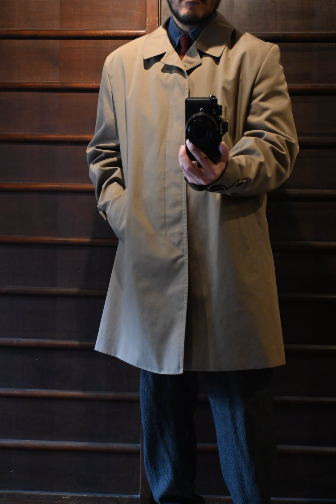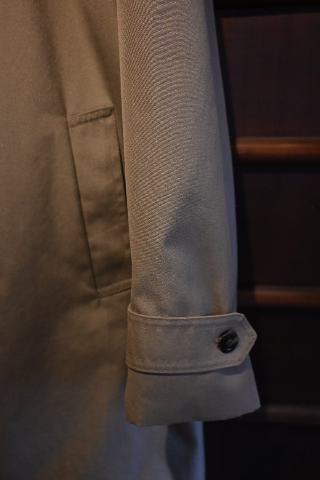 クラシックな英国コートらしい落ち着いた雰囲気の一着です。
