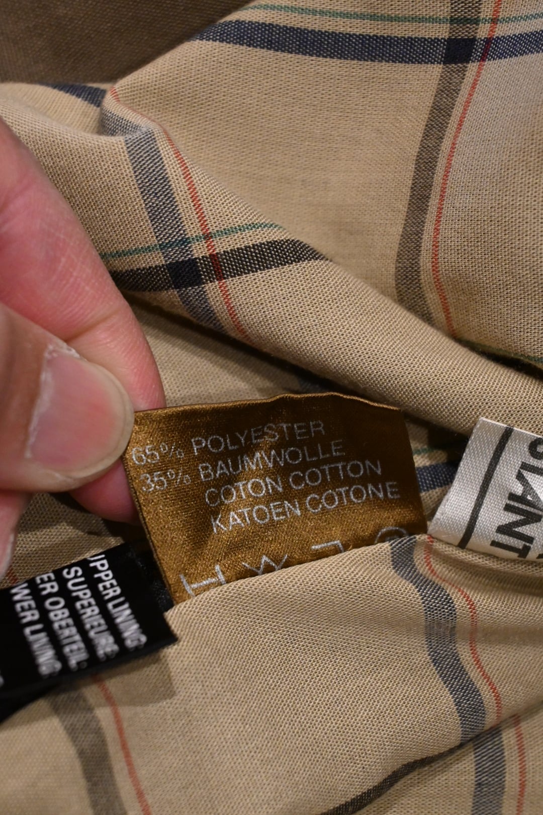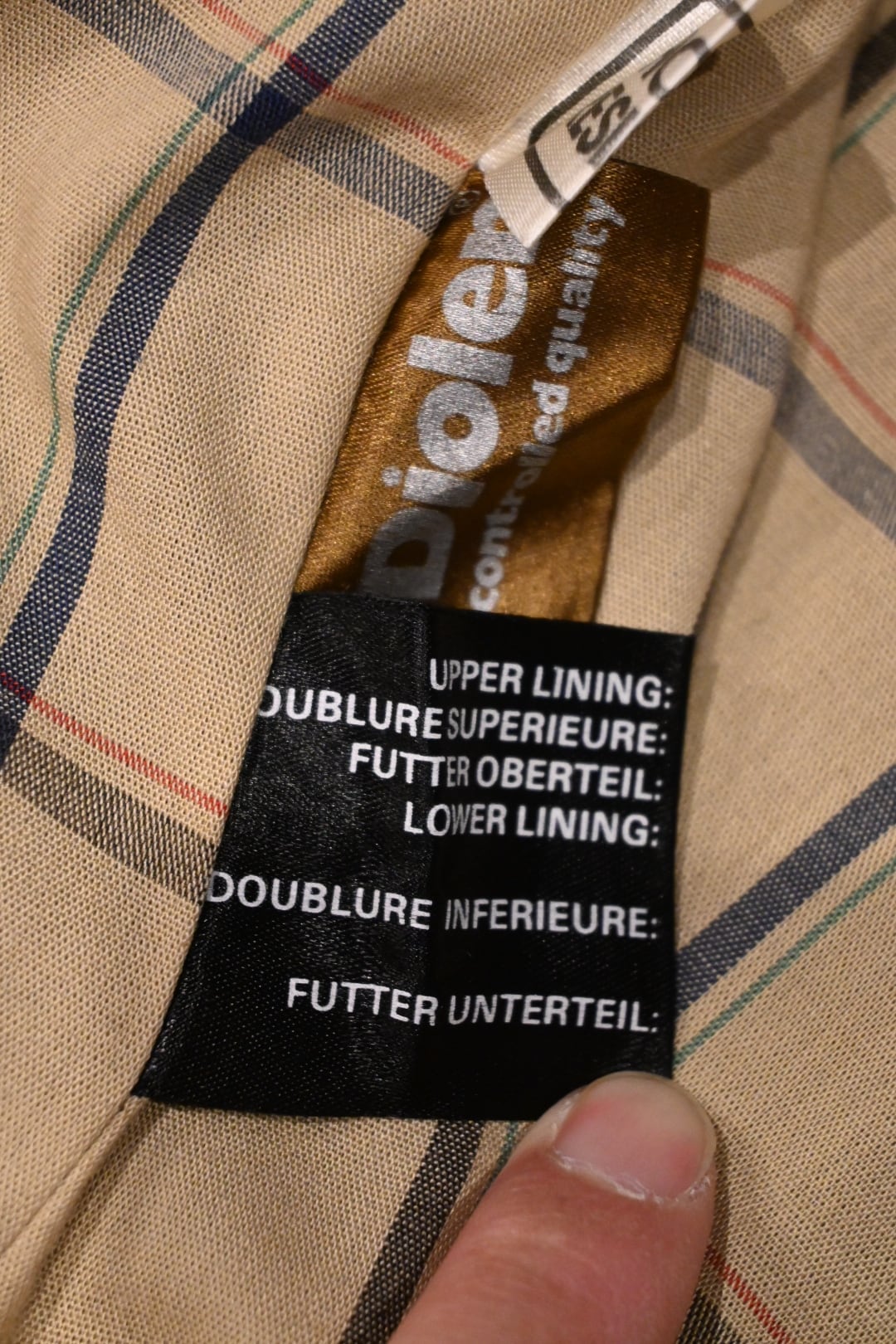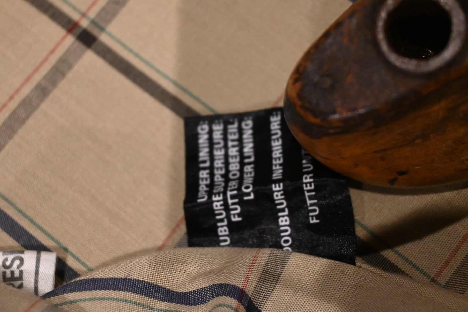 裏地は英国らしいチェック柄になっており、ヴィンテージらしい雰囲気があります。