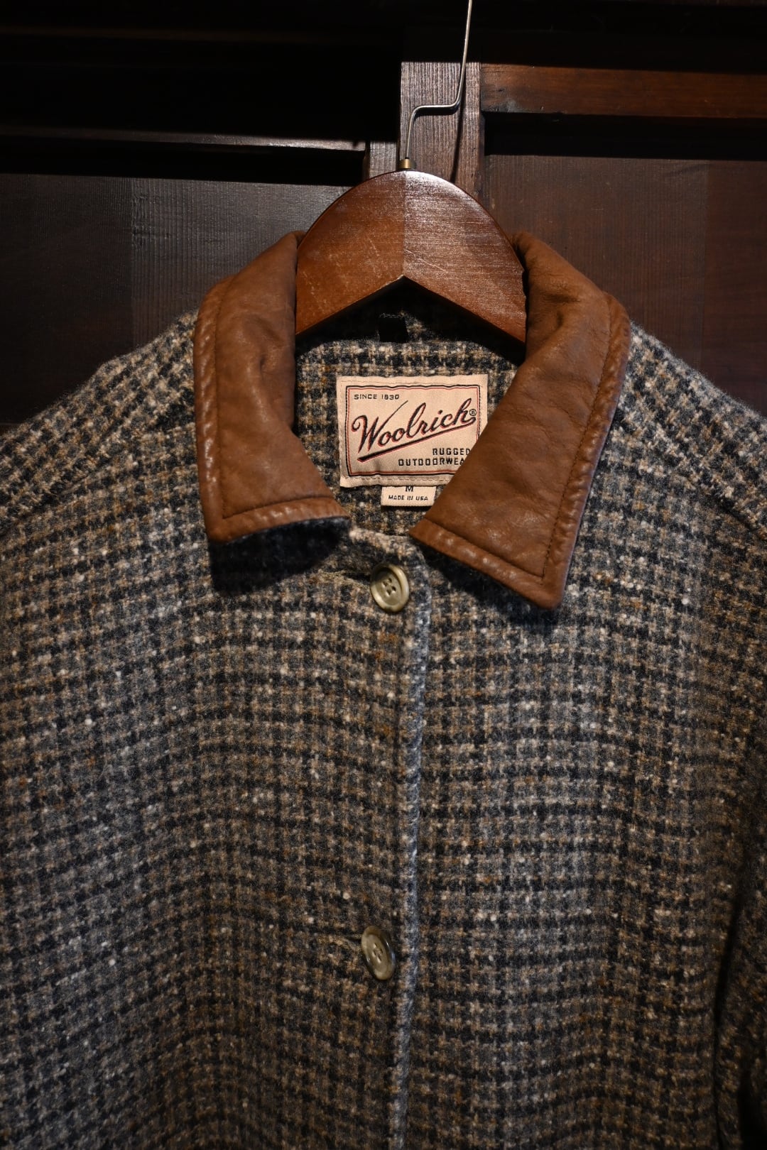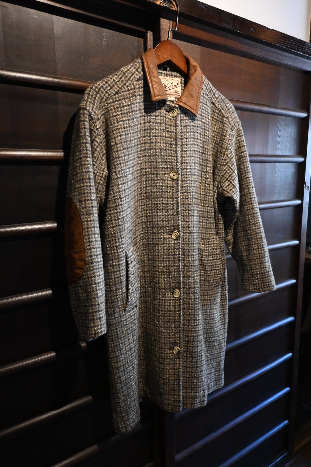 商品名: 90's vintage made in usa woolrich leather collar elbow patch wool tweed coat