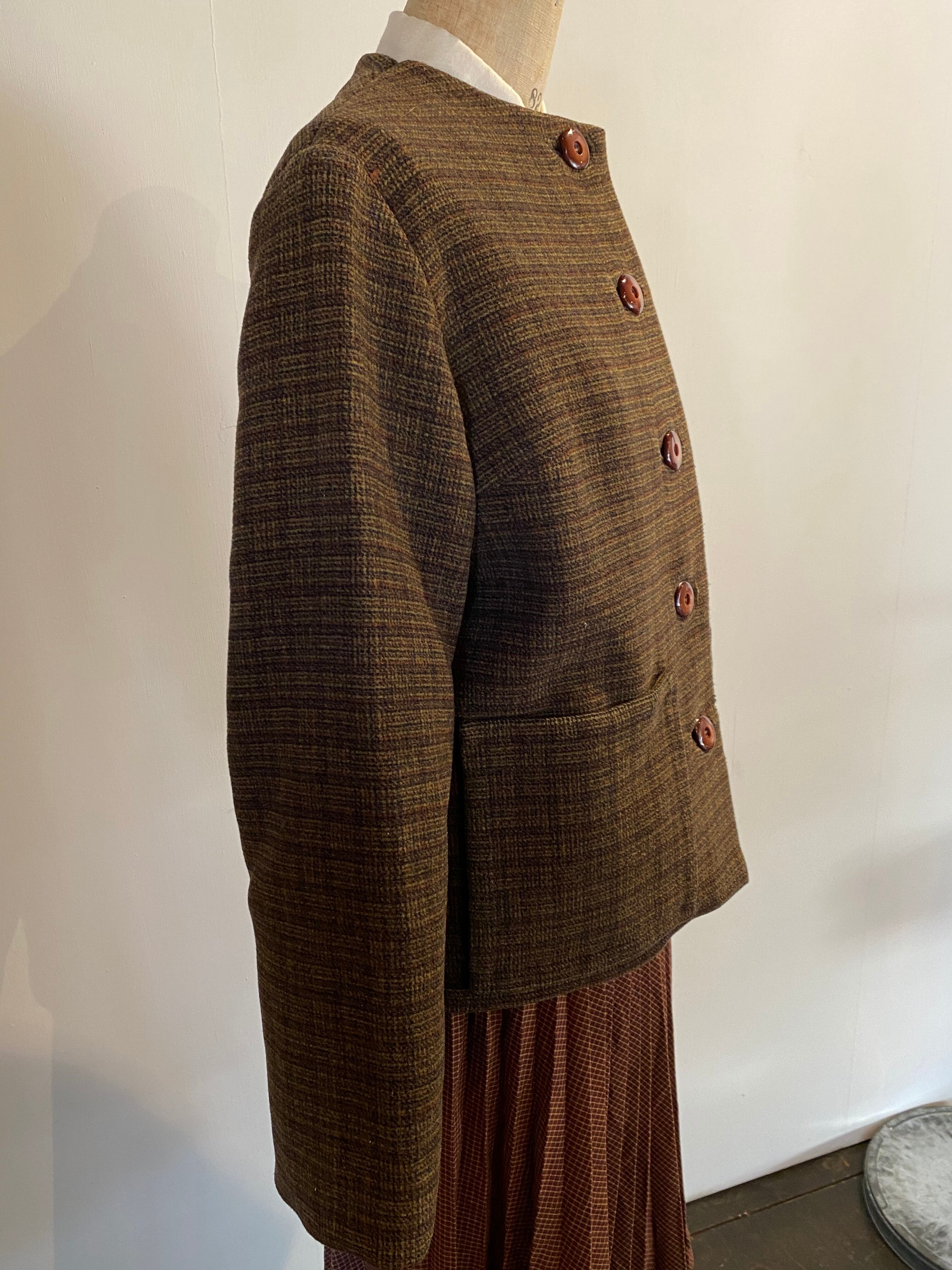 ブラウンベースのジャケットでボタンがとってもかわいいです。