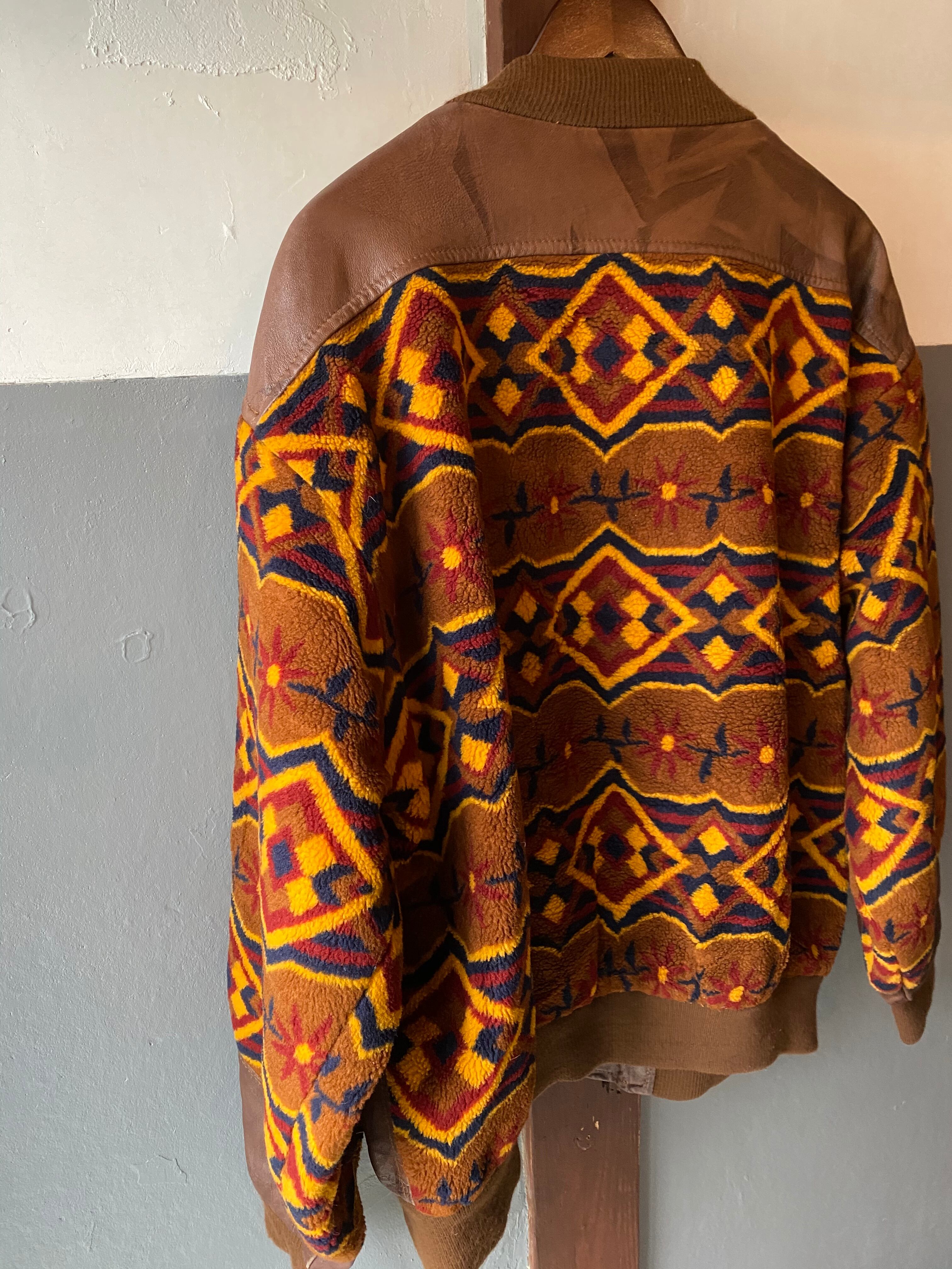 柄もとってもかっこよく派手になりなりすぎないのは、レザーとの組み合わせた事によって、落ち着きのある服です。