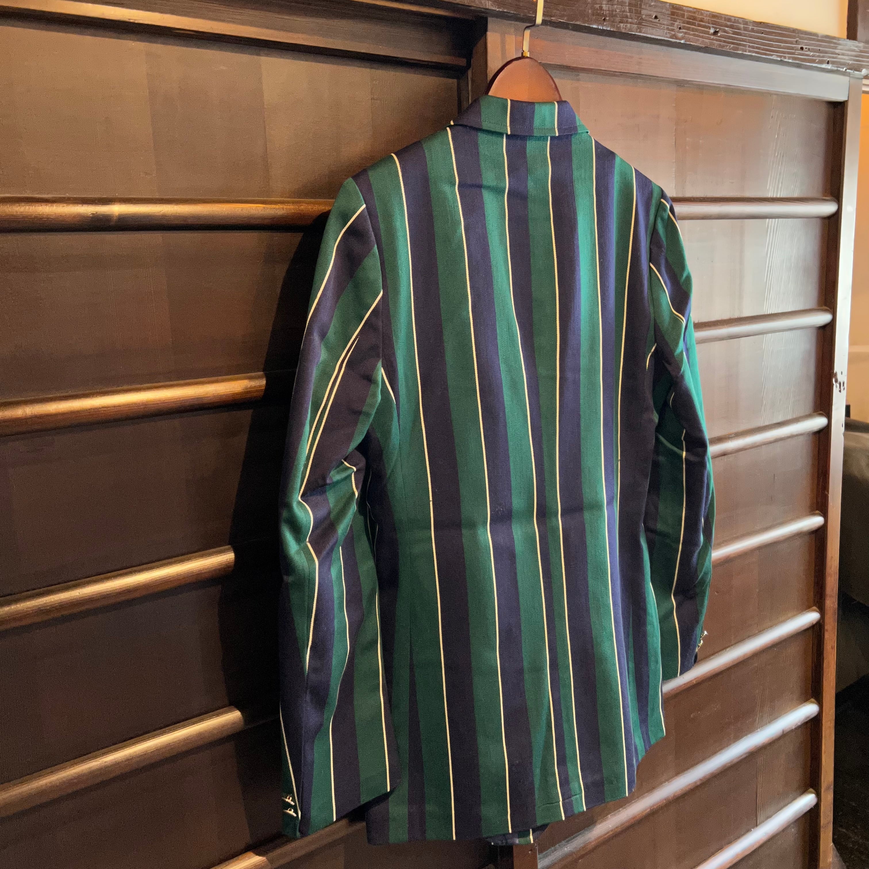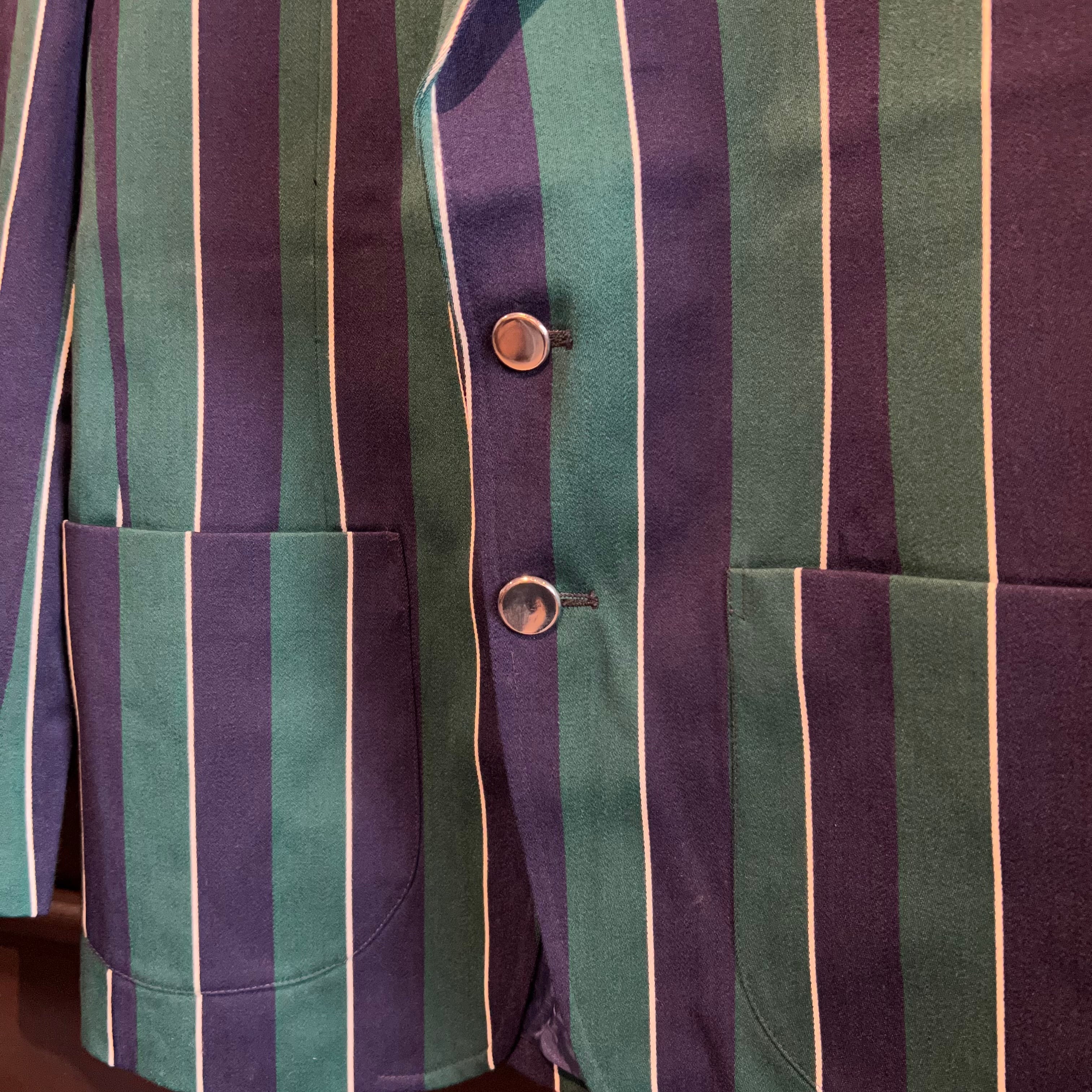 ストライプのカラーリングがとっても目を引くジャケットです。