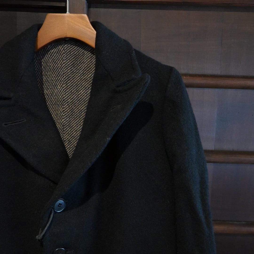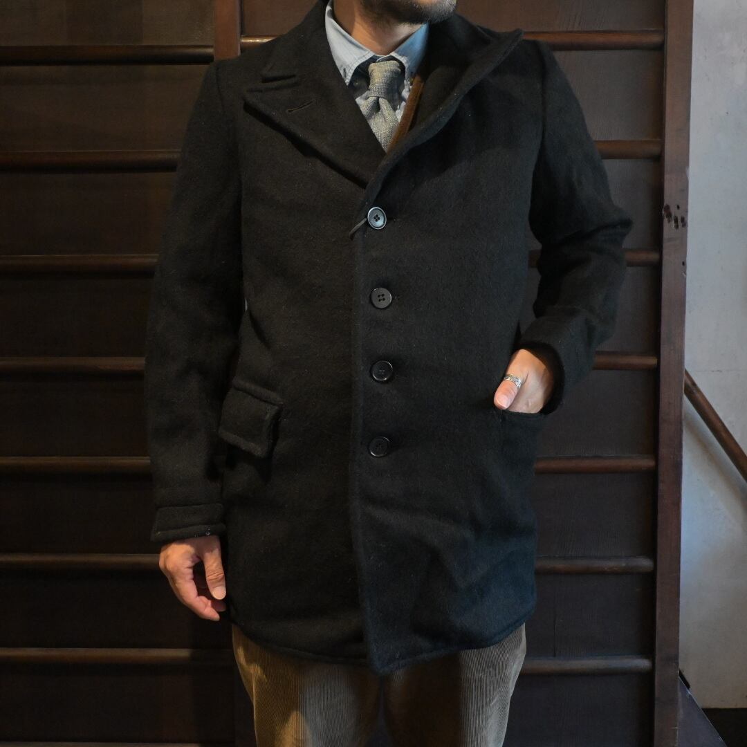 ミドル丈で作られているので、軍物のピーコートのように着ていただけます。