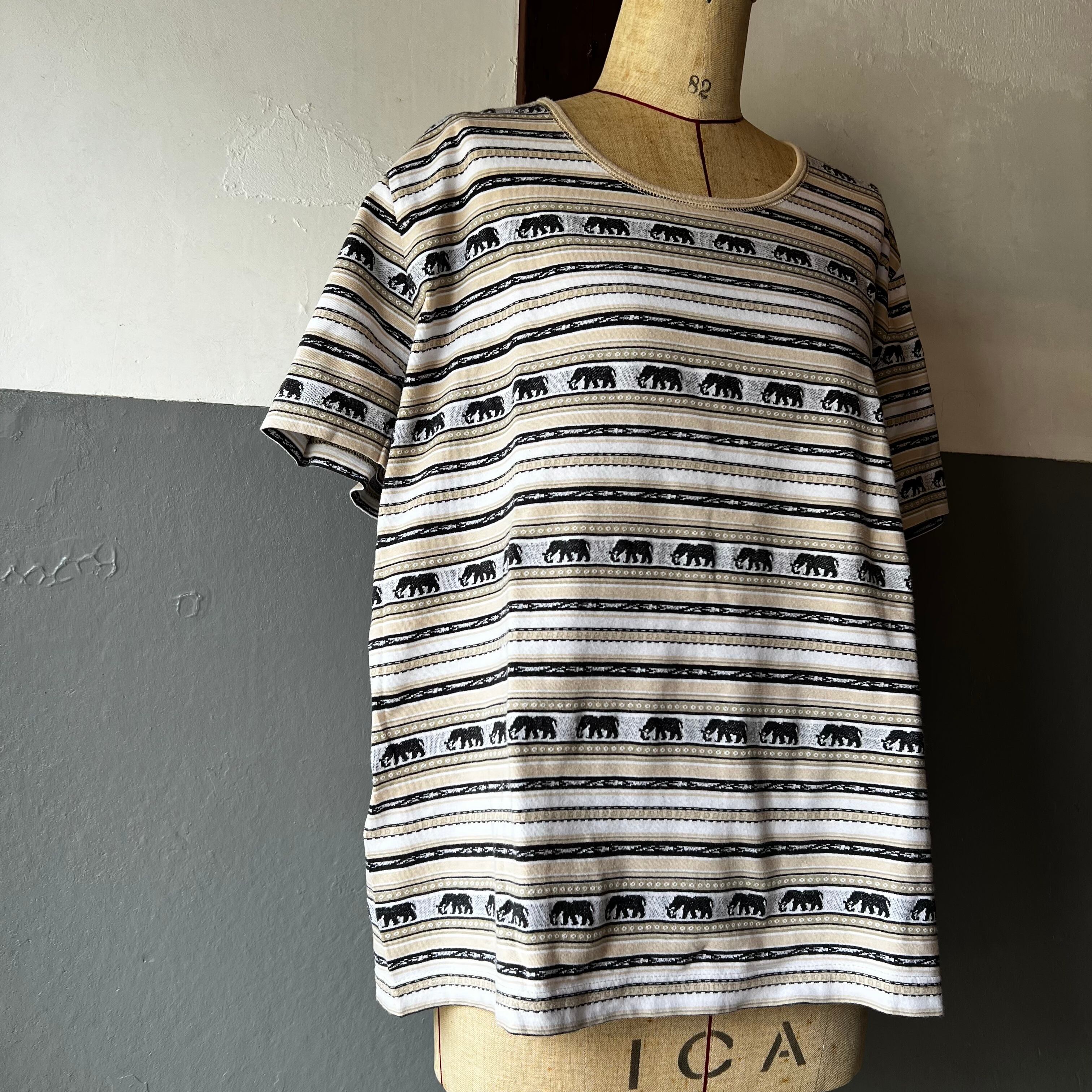 ヨーロッパで着られていた柄が印象的なTシャツです。