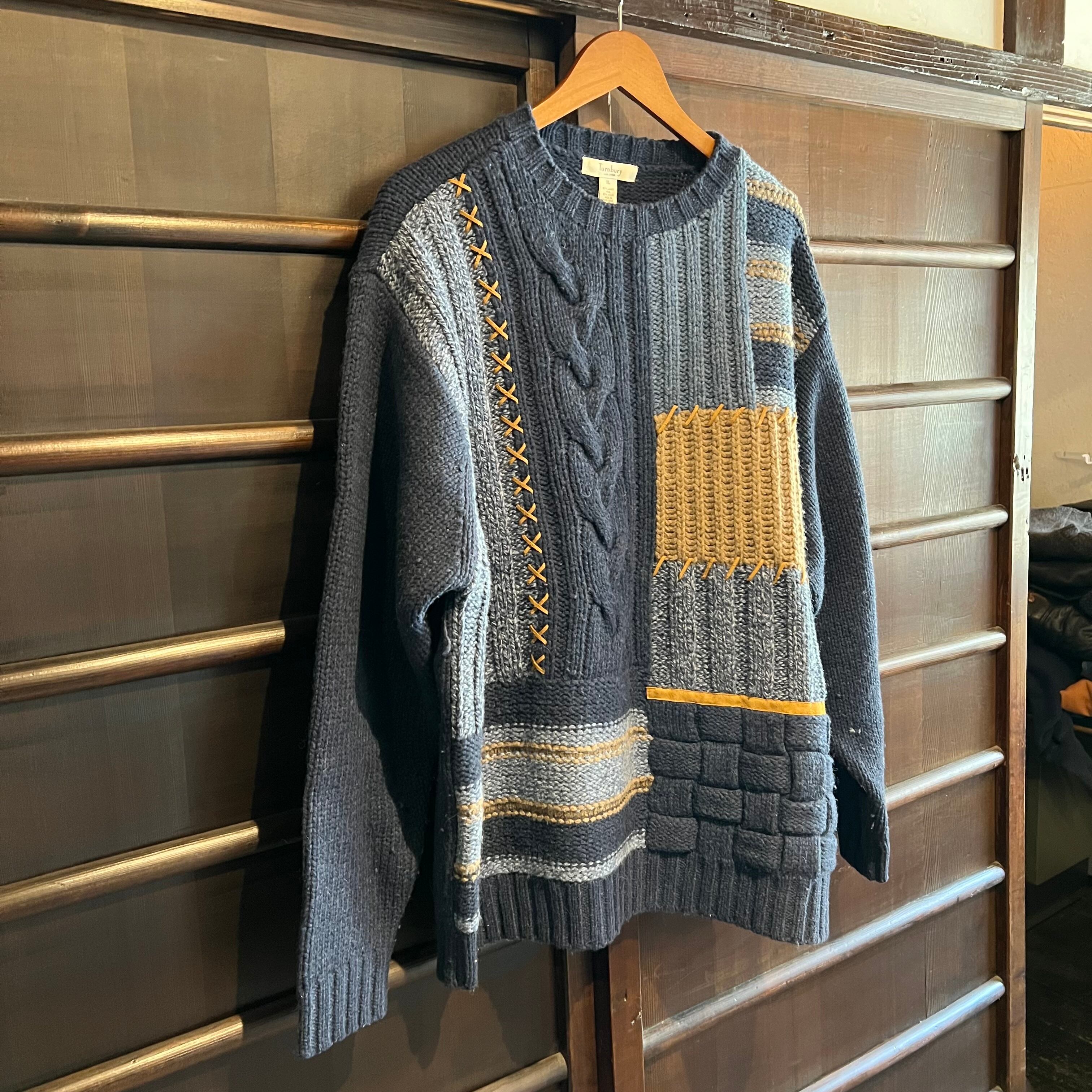 色々なデザインを組み合わせて作られたturn buryのニットです。