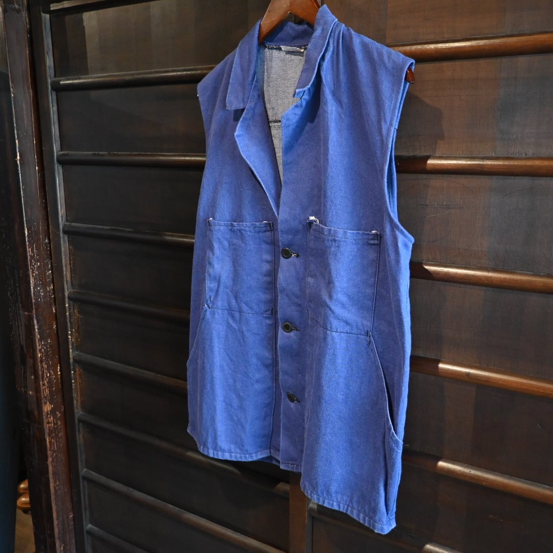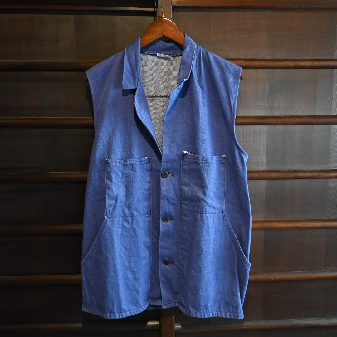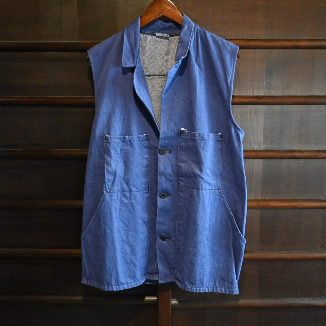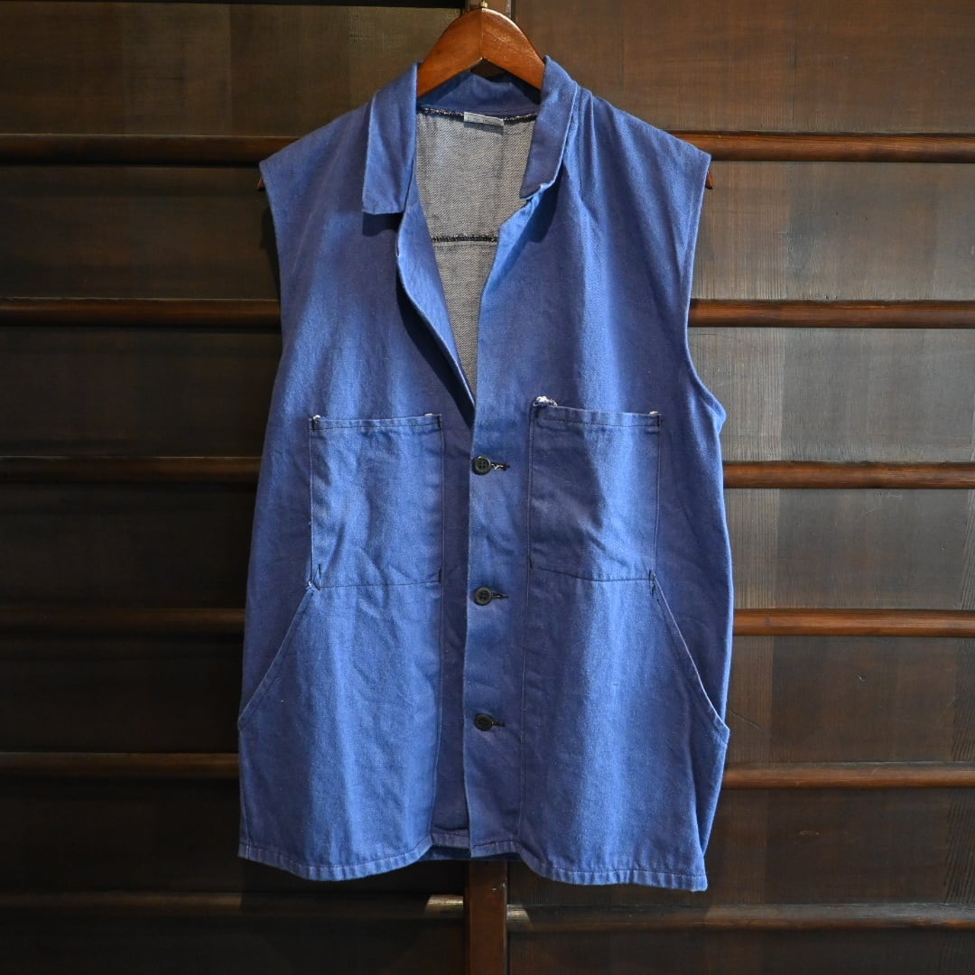 vintageのユーロワークジャケットを大胆にリメイクしてベストに。
