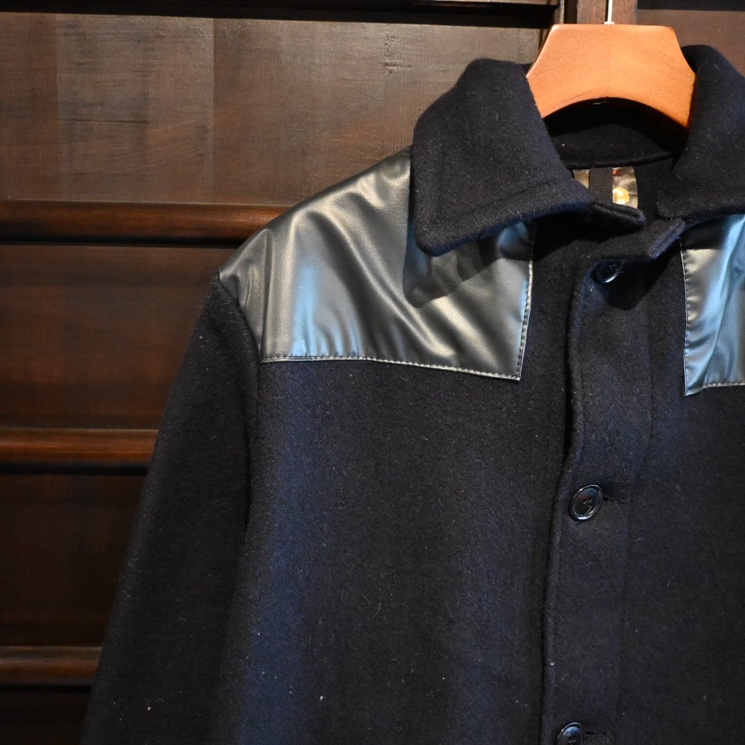 肩の辺りにレザーをつかった特徴的なデザインです。