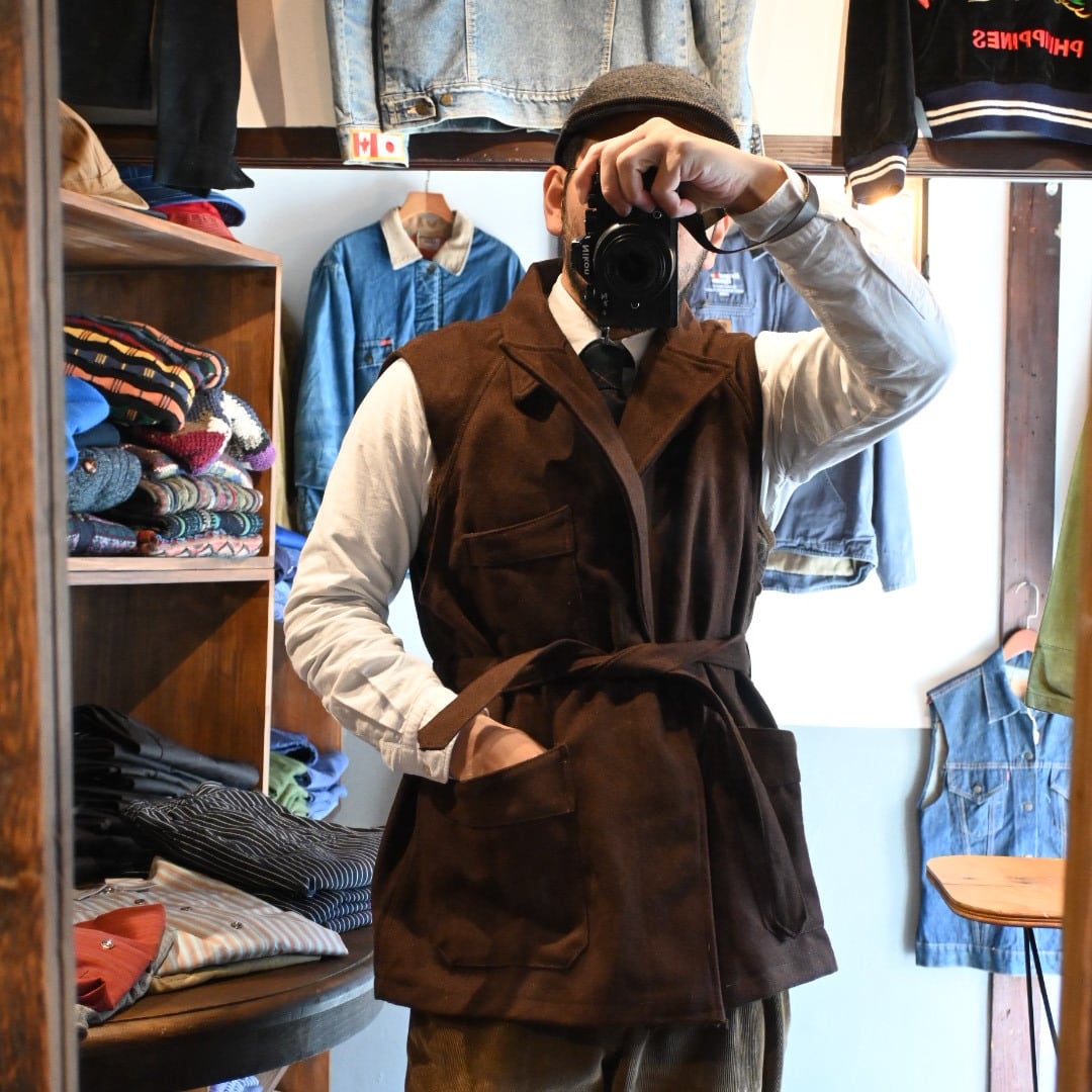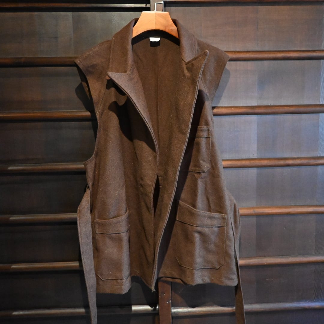 イタリアのヴィンテージホスピタルジャケットをベストにリメイク。