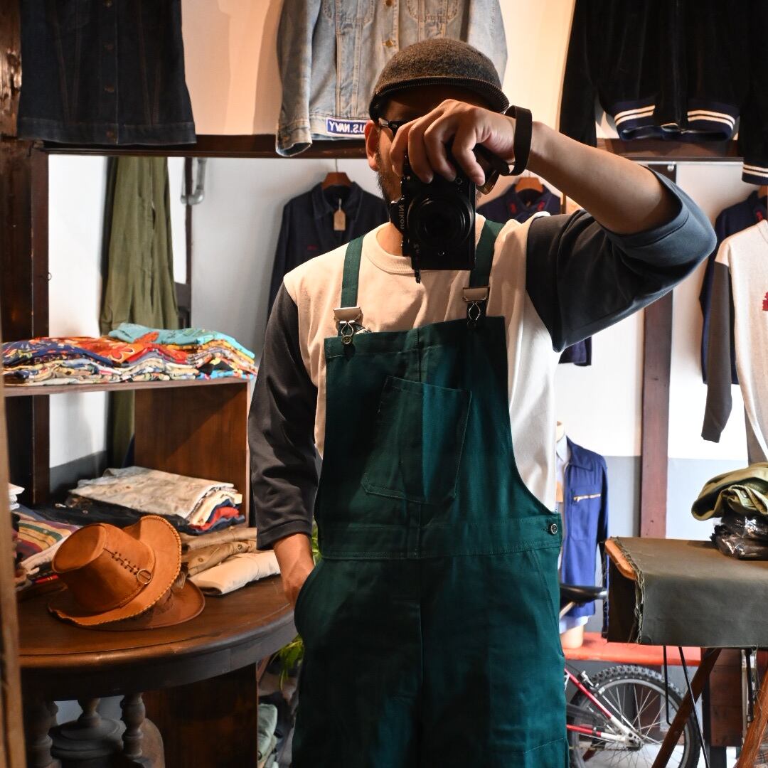 商品 : d/s made in england 70's vintage green cotton dungarees