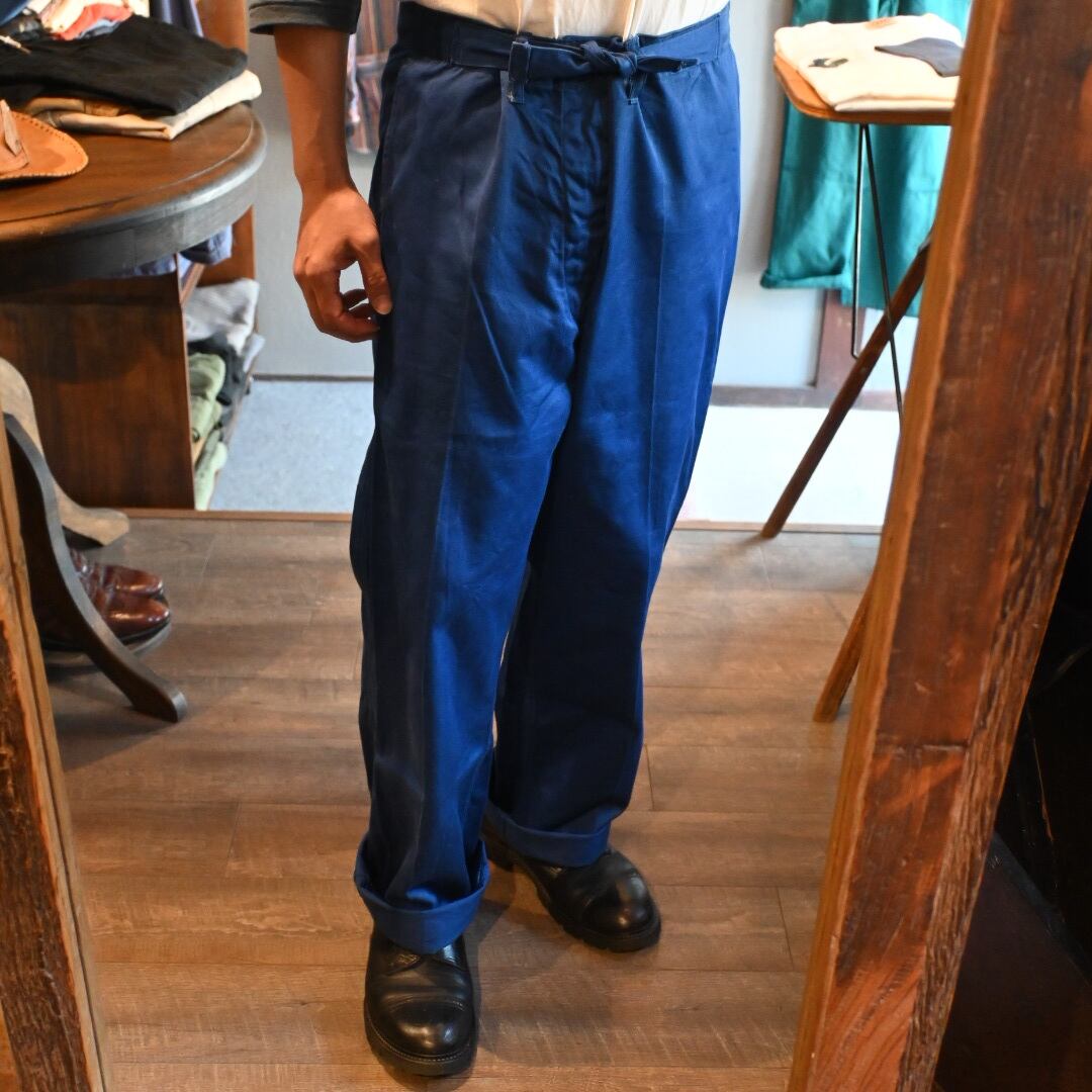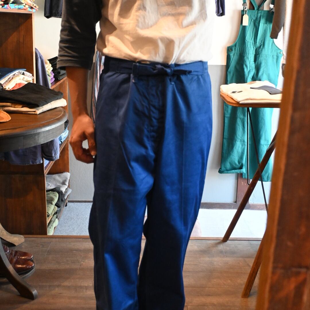 フロントは、ボタンフライ、ベルト代わりの紐が縫い付けてありベルトループは、フロントの2つです。