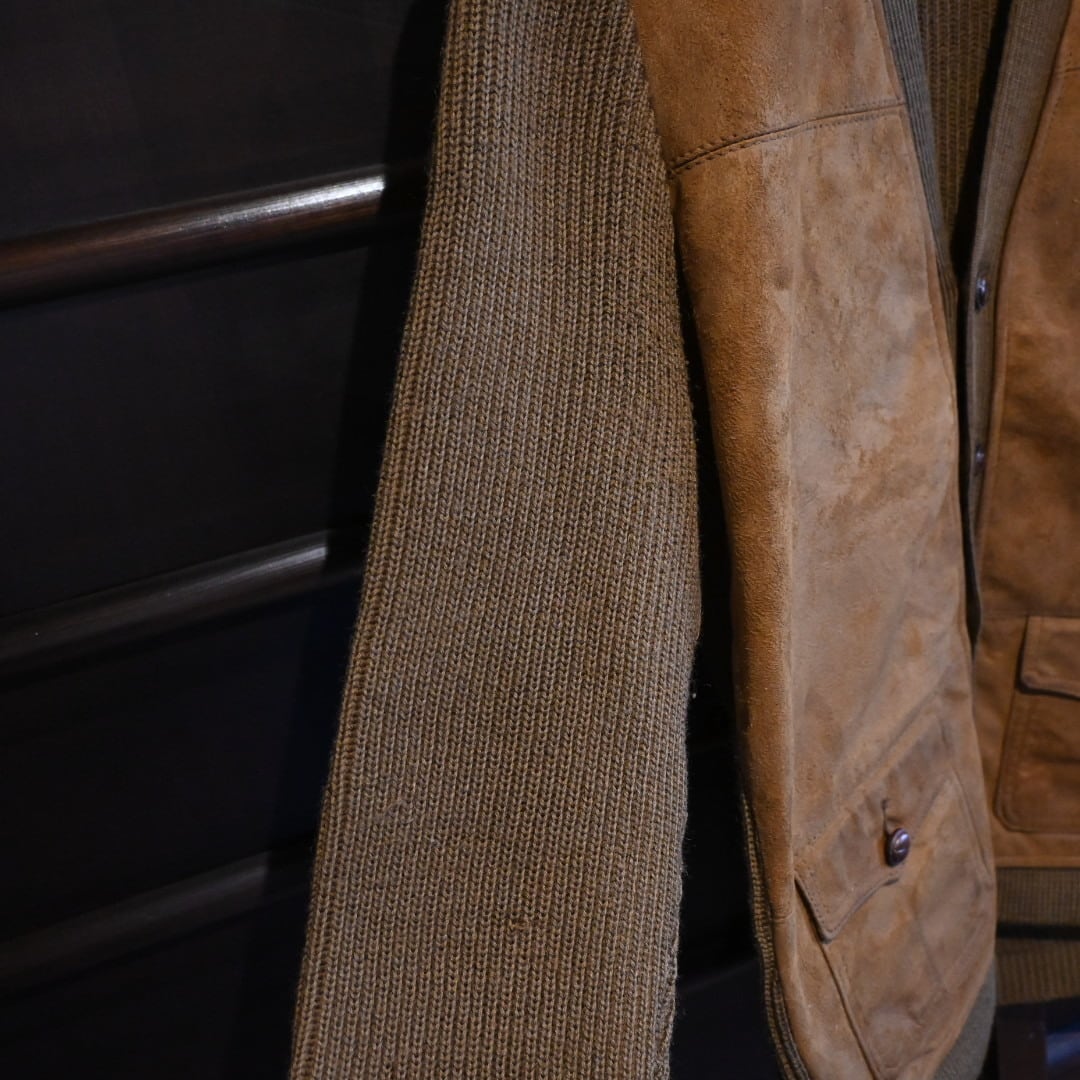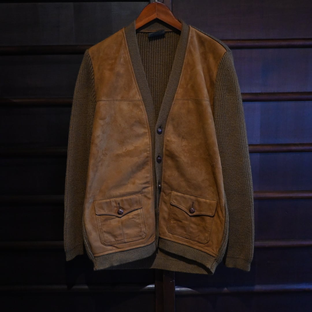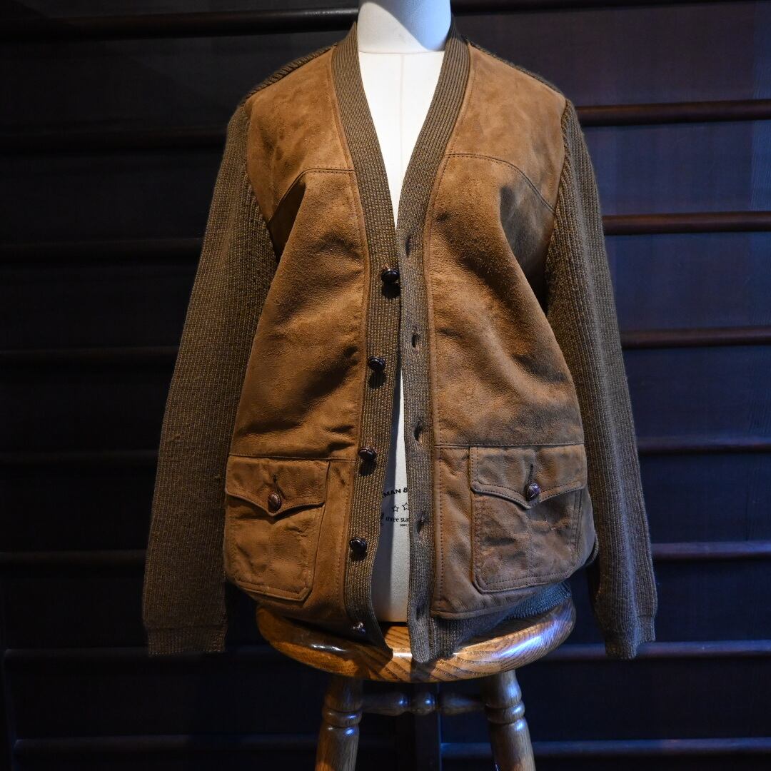 イギリスから入荷したスコットランド製suede×woolカーディガンです。