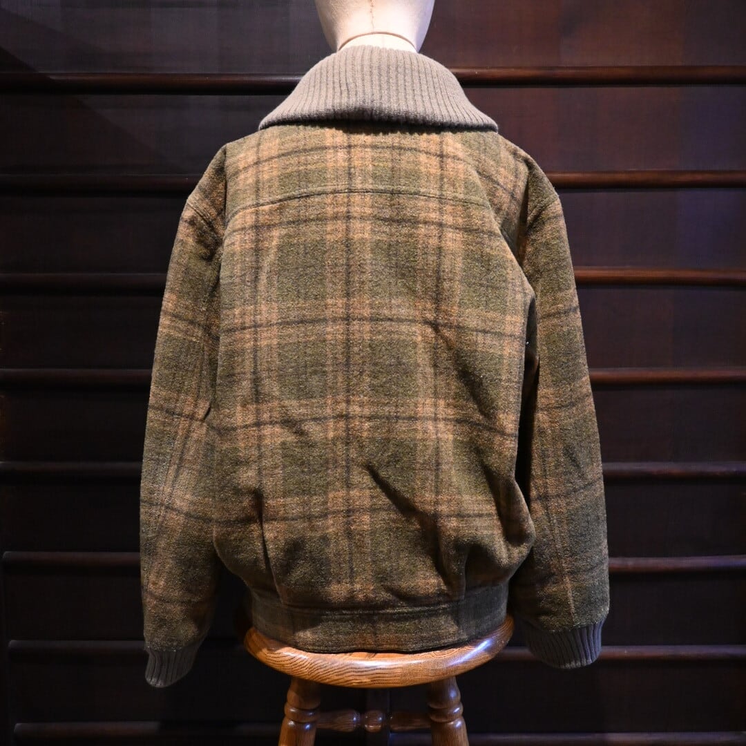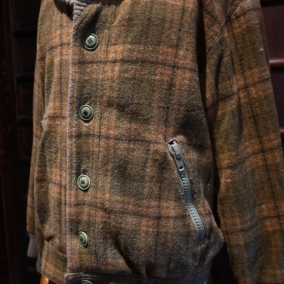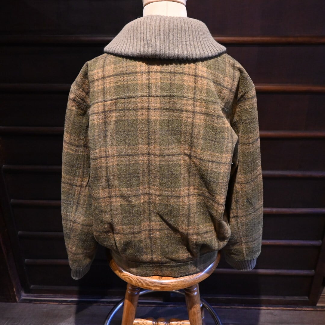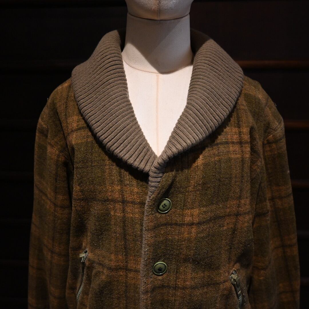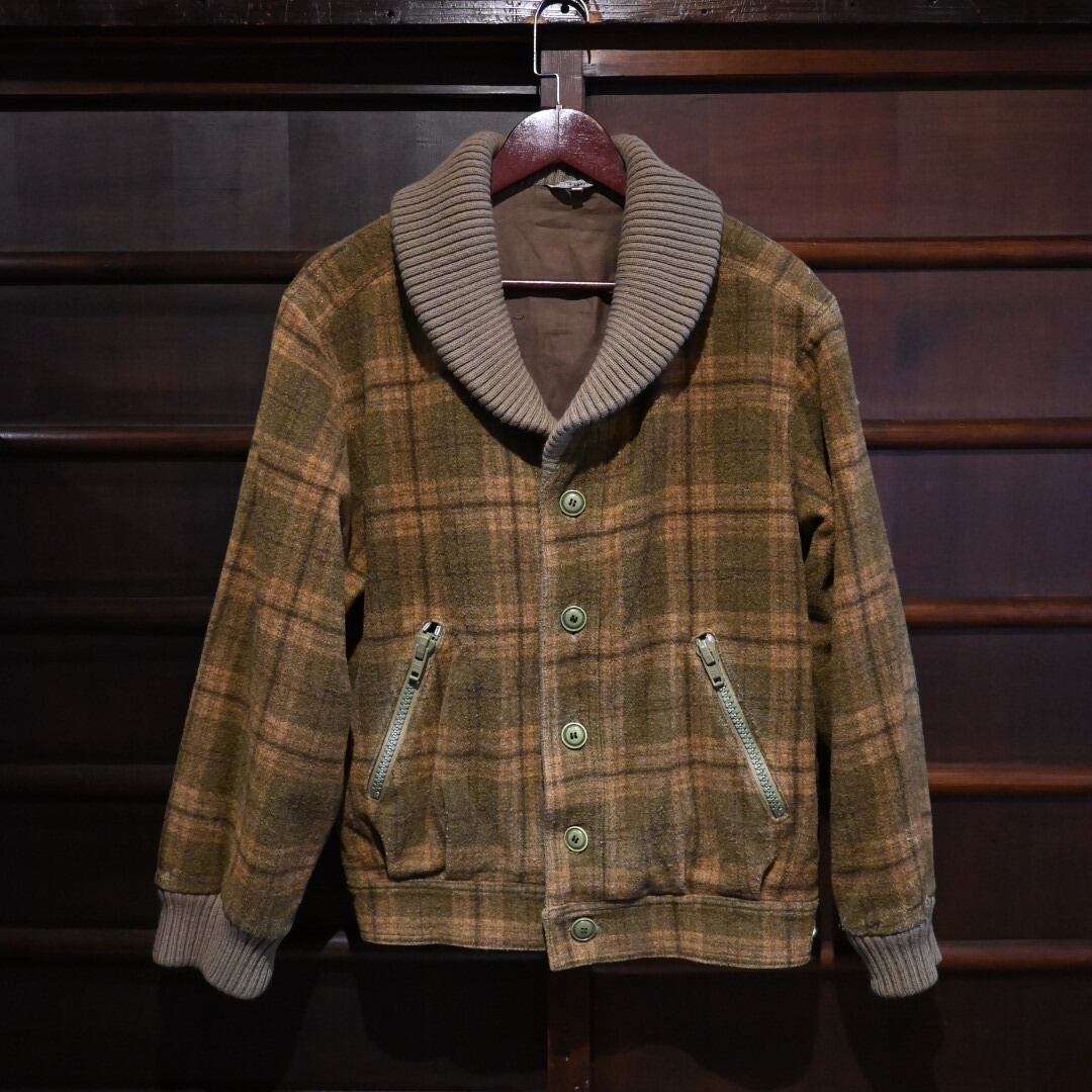 チェック柄のショートウールブルゾンでショールカラーになっているのがポイント。