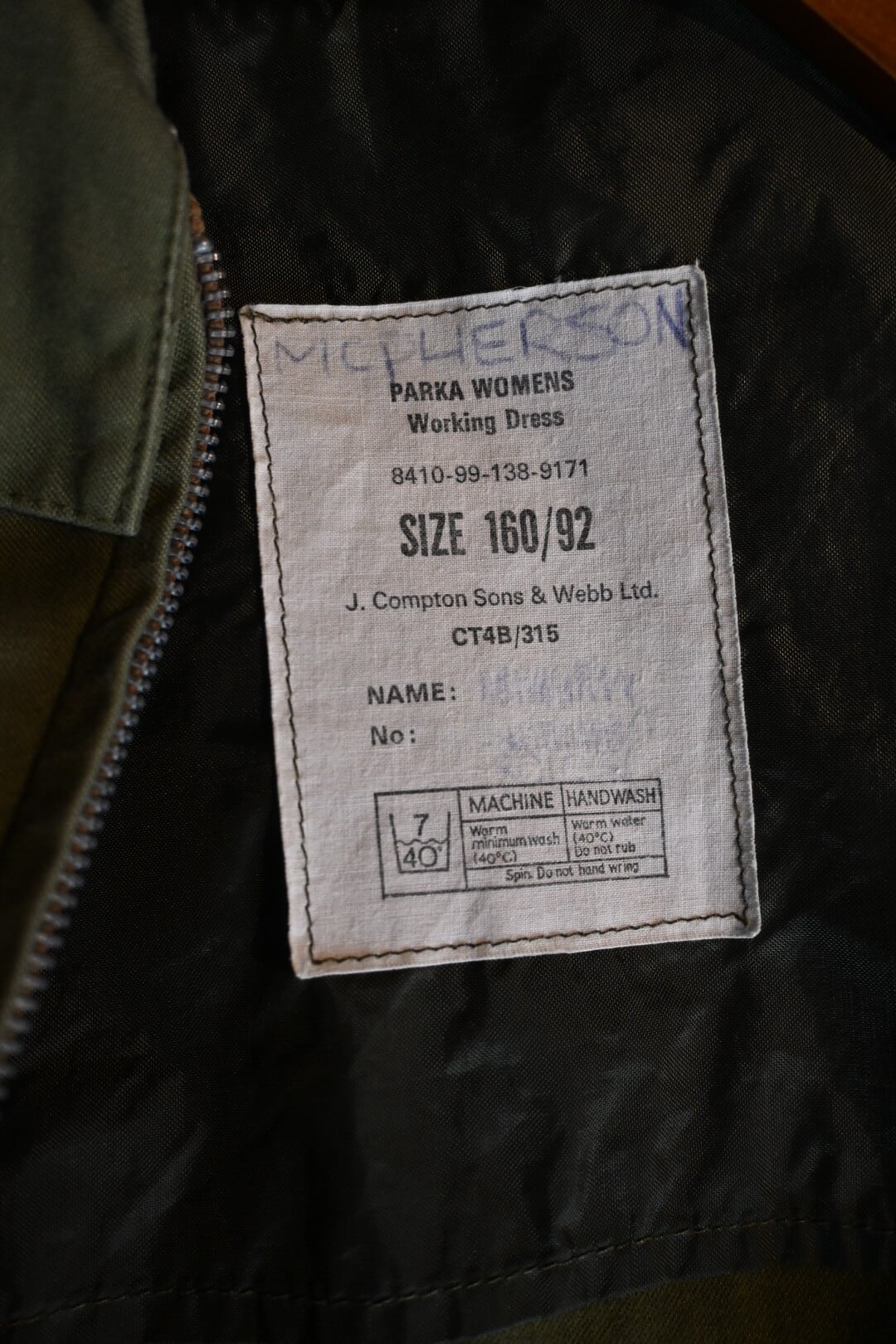 70's80's頃のイギリス軍ワーキングドレスパーカーで、元々は女性用に作られていますが、男性が着ても問題なく着ていただけます。